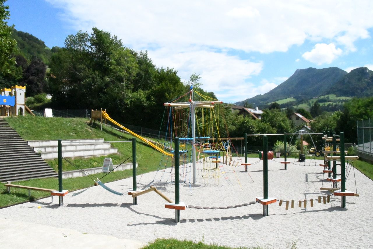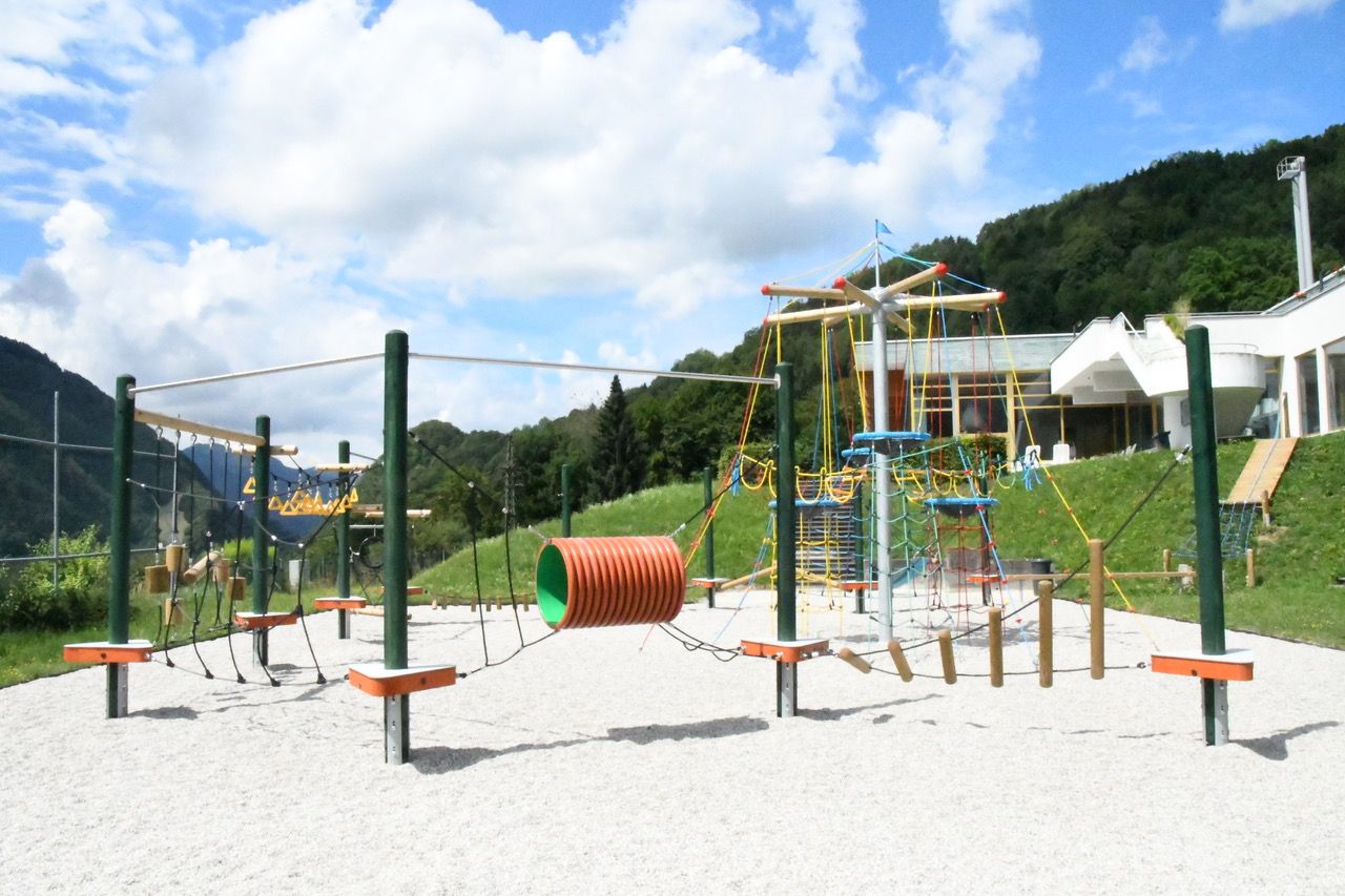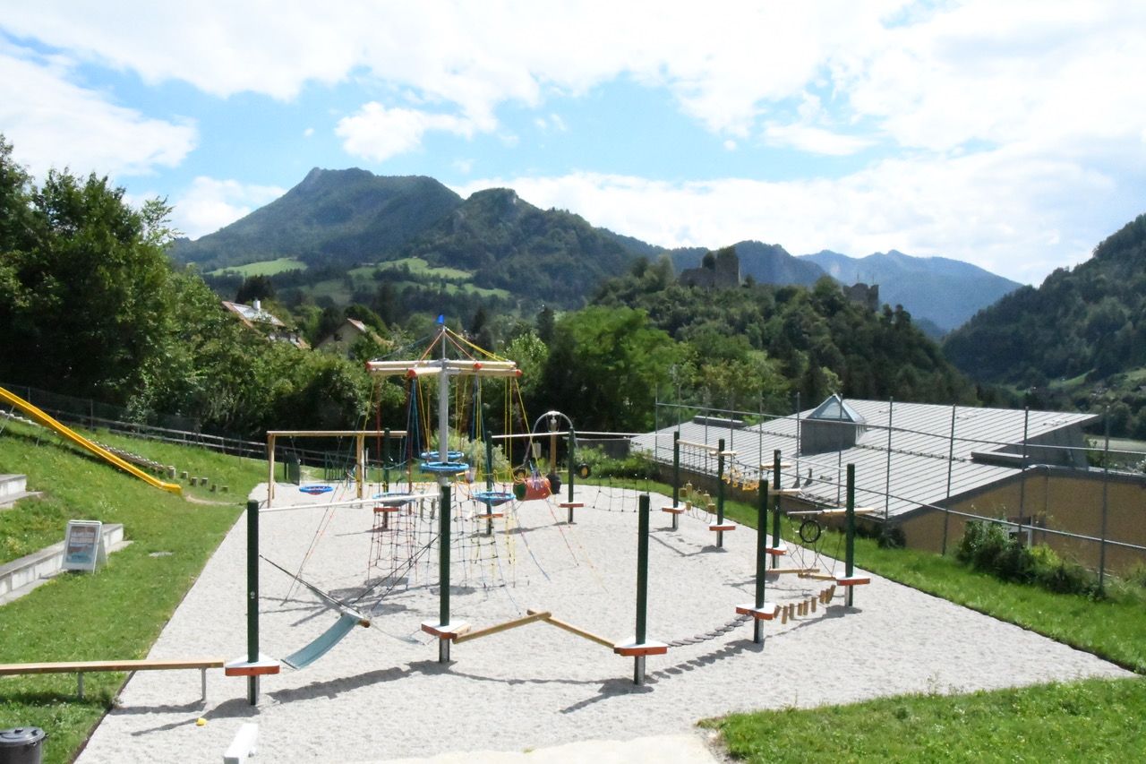 Ein interessantes Projekt, wo OBRA TriMo zum Einsatz kommt, ist der neue Spielplatz beim Schwimmbad der Gemeinde Losenstein im oberösterreichischen Ennstal. Auf Basis einer Planung des OBRA Design Teams gemeinsam mit unserem Fachberater Manfred Aitzetmüller entstand im Frühjahr 2022 ein umfassendes Spielangebot für alle Generationen. Neben einem Kleinkinderspielplatz auf der oberen Spielebene und einer rasanten Hangrutsche, kombiniert mit diversen Aufstiegen, wurde auf der unteren Spielebene ein zentraler Vogelnestbaum installiert, der als „Landmark“ ein Klettererlebnis in luftige Höhen bietet. Umgeben wird dieses Gerät durch einen OBRA TriMo Geschicklichkeitsparcours mit nicht weniger als 10 Übergangselementen, eine tolle Herausforderung gemäß dem Motto „Zeig´ was in dir steckt!“ Das Layout dieser Anlage zeigt exemplarisch die beinahe unendlichen Möglichkeiten, wie OBRA TriMo angeordnet und kombiniert werden kann. Somit wird der vorhandene Raum am Spielplatz optimal genutzt.