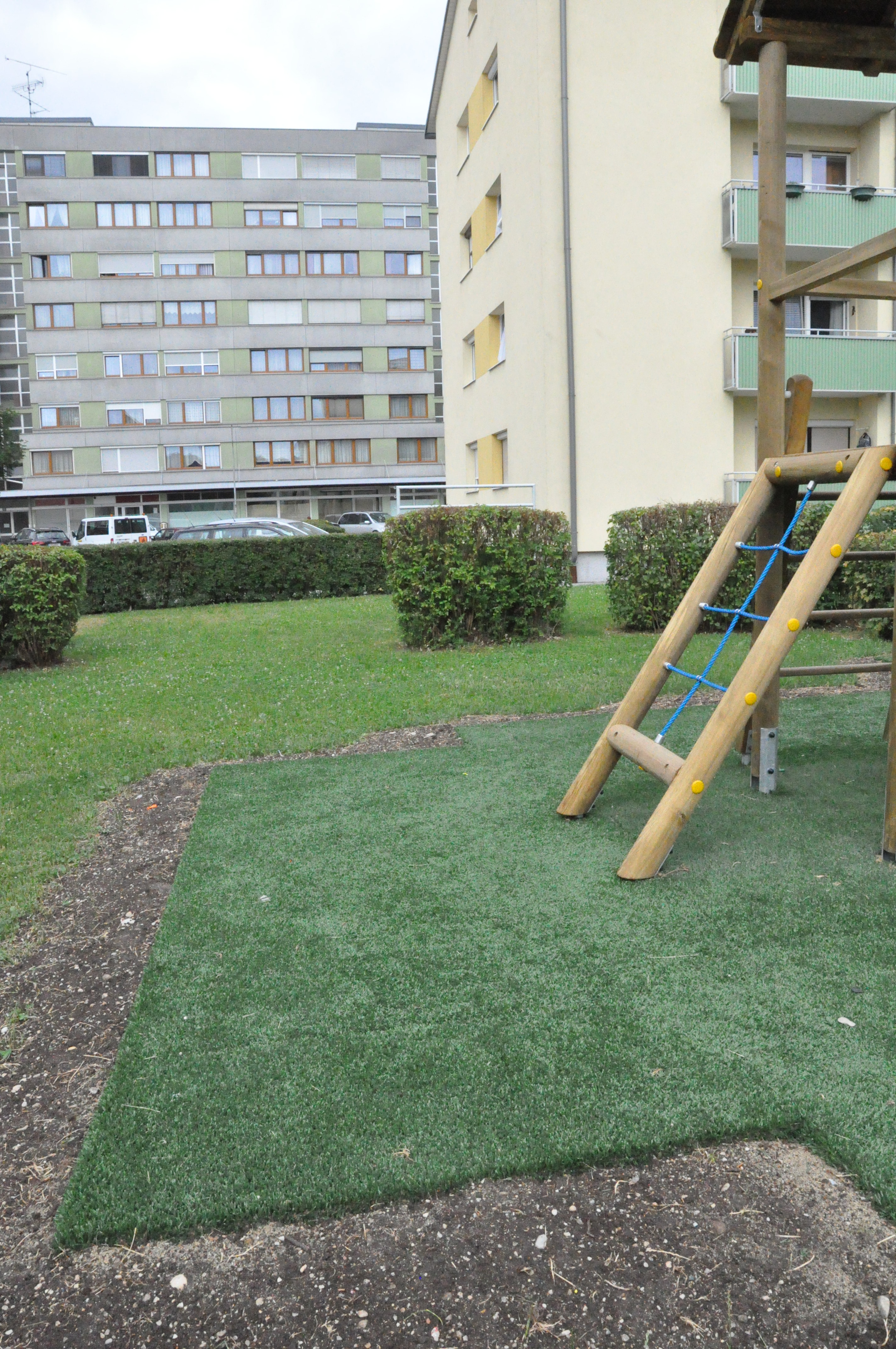 Platten aus Polyethylen mit Kunstrasen.Für große Fallhöhen geeignet.