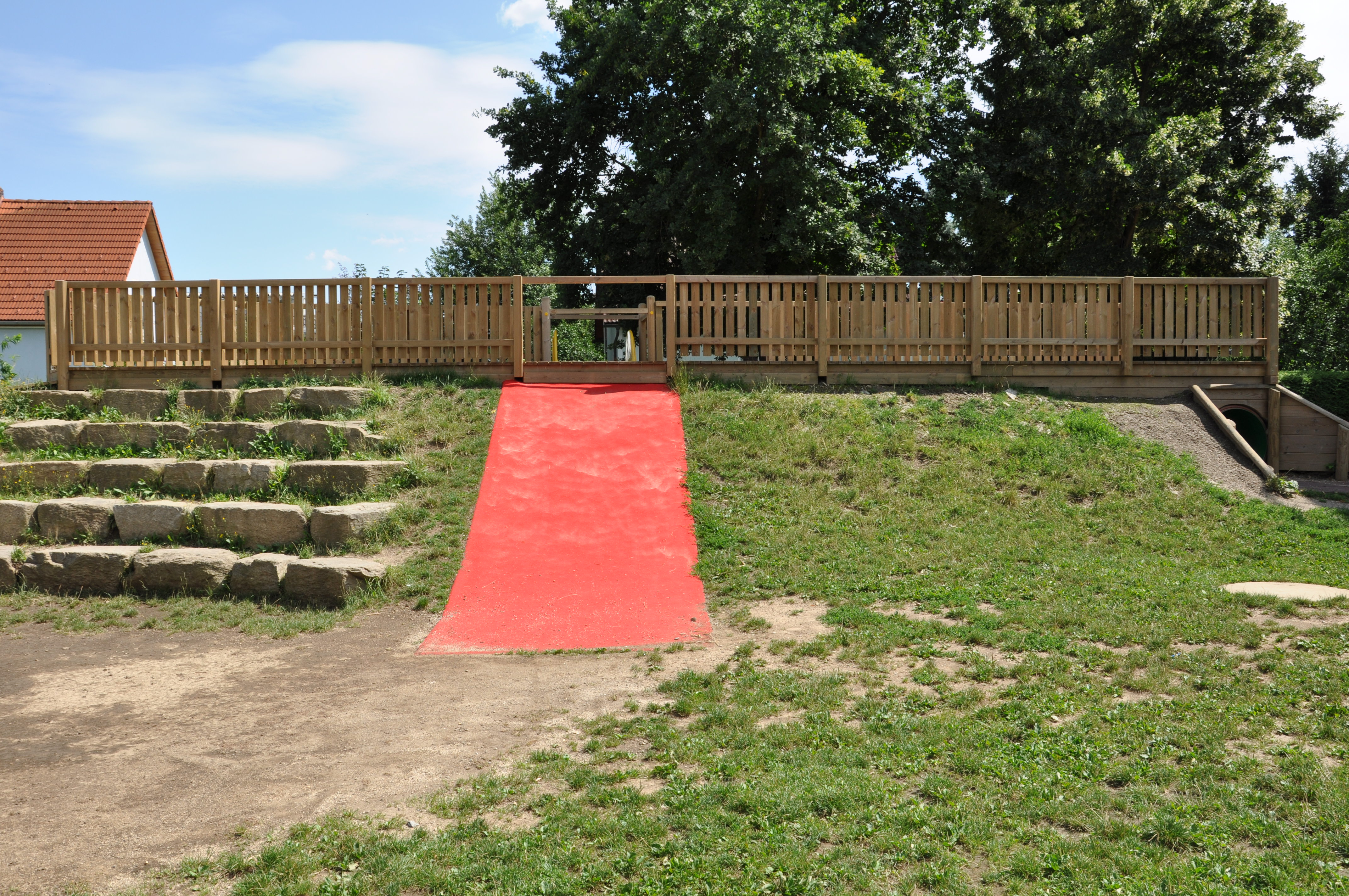 ChildsPlay® ist ein hochwertiges Kunstrasensystem, das ganz besonders für die Hangabsicherung geeignet ist, zum Beispiel für stark bespielte Hügel mit Hangrutschen.