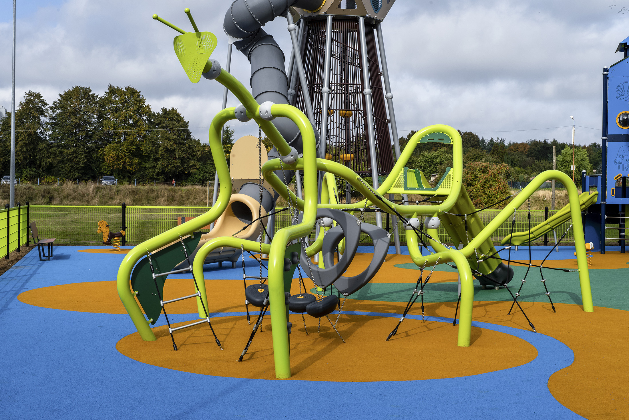 Unser Spielgerät "Gottesanbeterin" bietet ein vielseitiges Klettererlebnis für Kinder jeden Alters. Das Gerät verfügt über diverse Netze zum Klettern und Hangeln, zwei Kletterwände sowie Balancierelemente für zusätzliche Herausforderungen. Die integrierte Rutsche sorgt für extra Spaß und Abenteuer. Aufforderungscharakter wird durch das helle Grün der Spielanlage erzeugt.