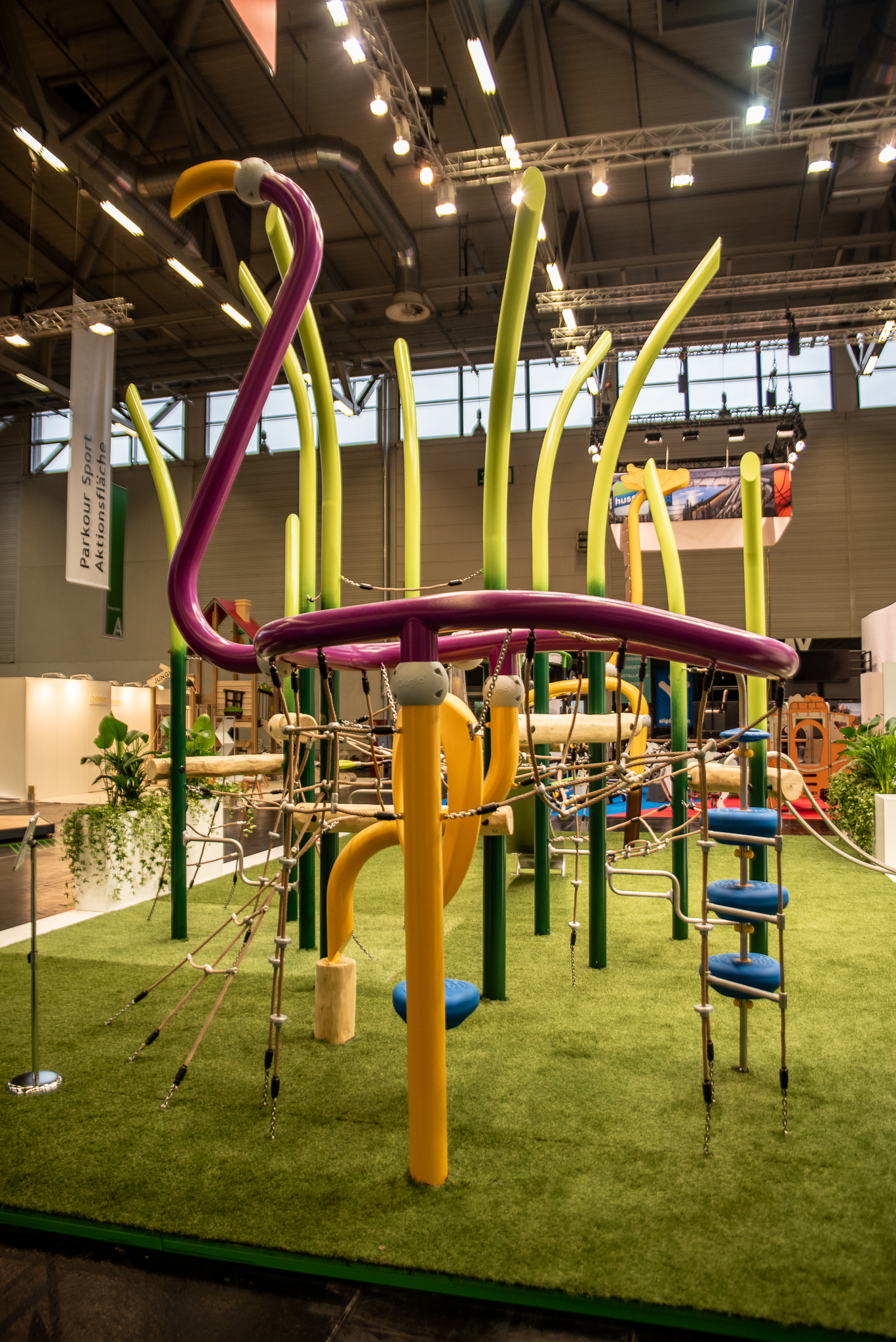 Die innovative Konstruktion besteht aus gebogenen Stahlrohren mit einem Mindestradius von 350 mm und einem Durchmesser von 133 mm, die durch ein einzigartiges Injektionsformverfahren miteinander verbunden sind. Die Rutsche gefertigt aus Edelstahlrohren und Blech, bieten Abwechslung und langlebigen Spielspaß. Pilzförmige Trittflächen aus LDPE mit antirutsch Beschichtung und die beweglichen Ringe, ebenfalls aus LDPE im Rotationsgussverfahren hergestellt, bieten zusätzliche Spieloptionen. Die Netze aus 16 mm dicken Polypropylen-Multisplit-Seilen mit Stahlkern sind extrem strapazierfähig und für jedes Spiel gewappnet. Alle exponierten Schrauben bestehen aus hochwertigem Edelstahl, um auch langfristig die Sicherheit und Wetterbeständigkeit zu gewährleisten.