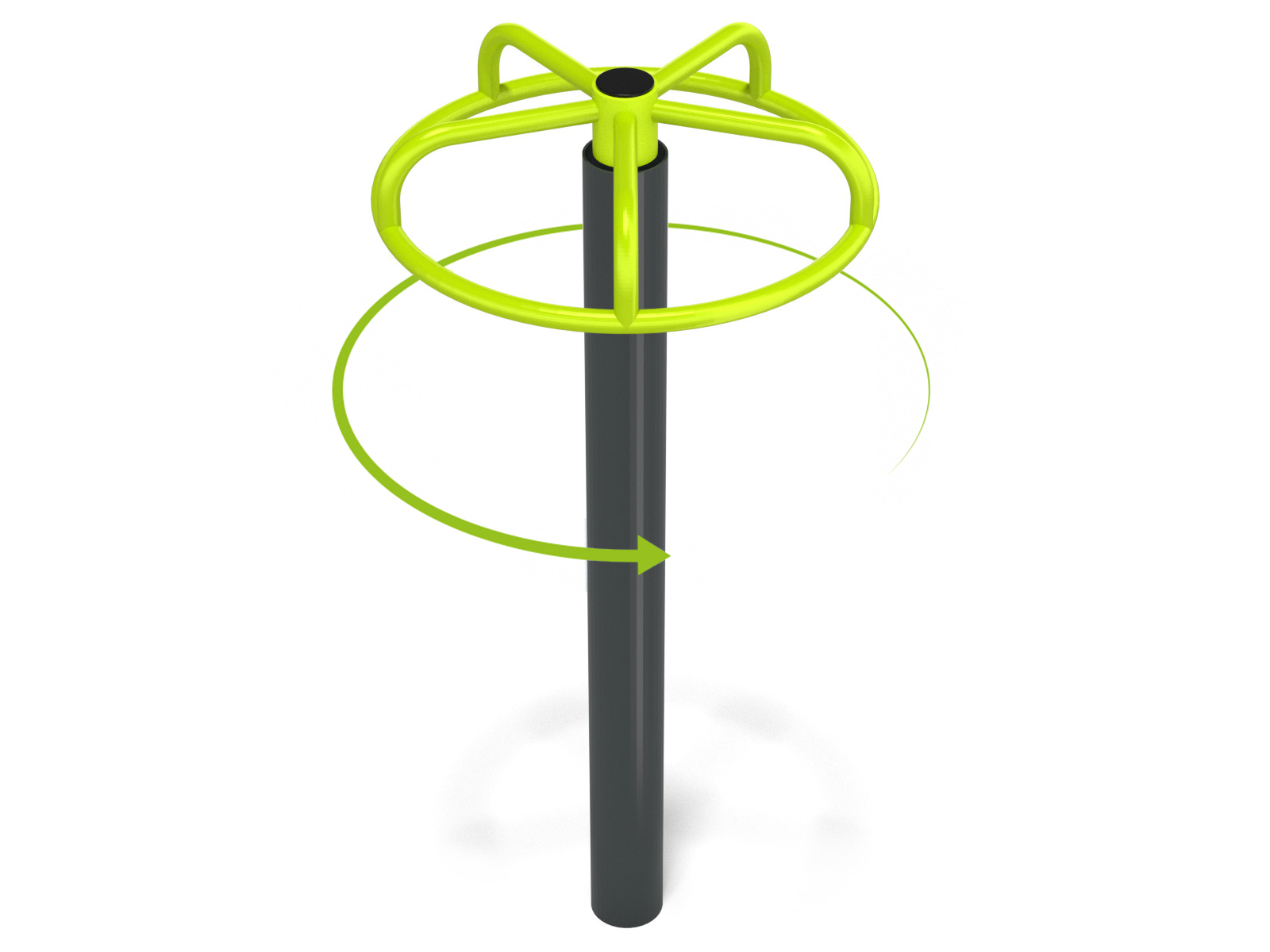 Beschreibung: Der Hänge-Rotator richtet sich an Benutzer ab dem Grundschulalter. Das Karussell wird durch Andrehen oder Anstoßen in Bewegung gesetzt. Je nach dem wie schnell sich der Rotator dreht muss neben dem eigenen Körpergewicht auch die Fliehkraft gehalten werden. So entsteht ein schnelles, wirbelndes Spiel. Neben der Stärkung der Arm- und Schultermuskulatur werden auch die sozialen Interaktionen gefördert.
