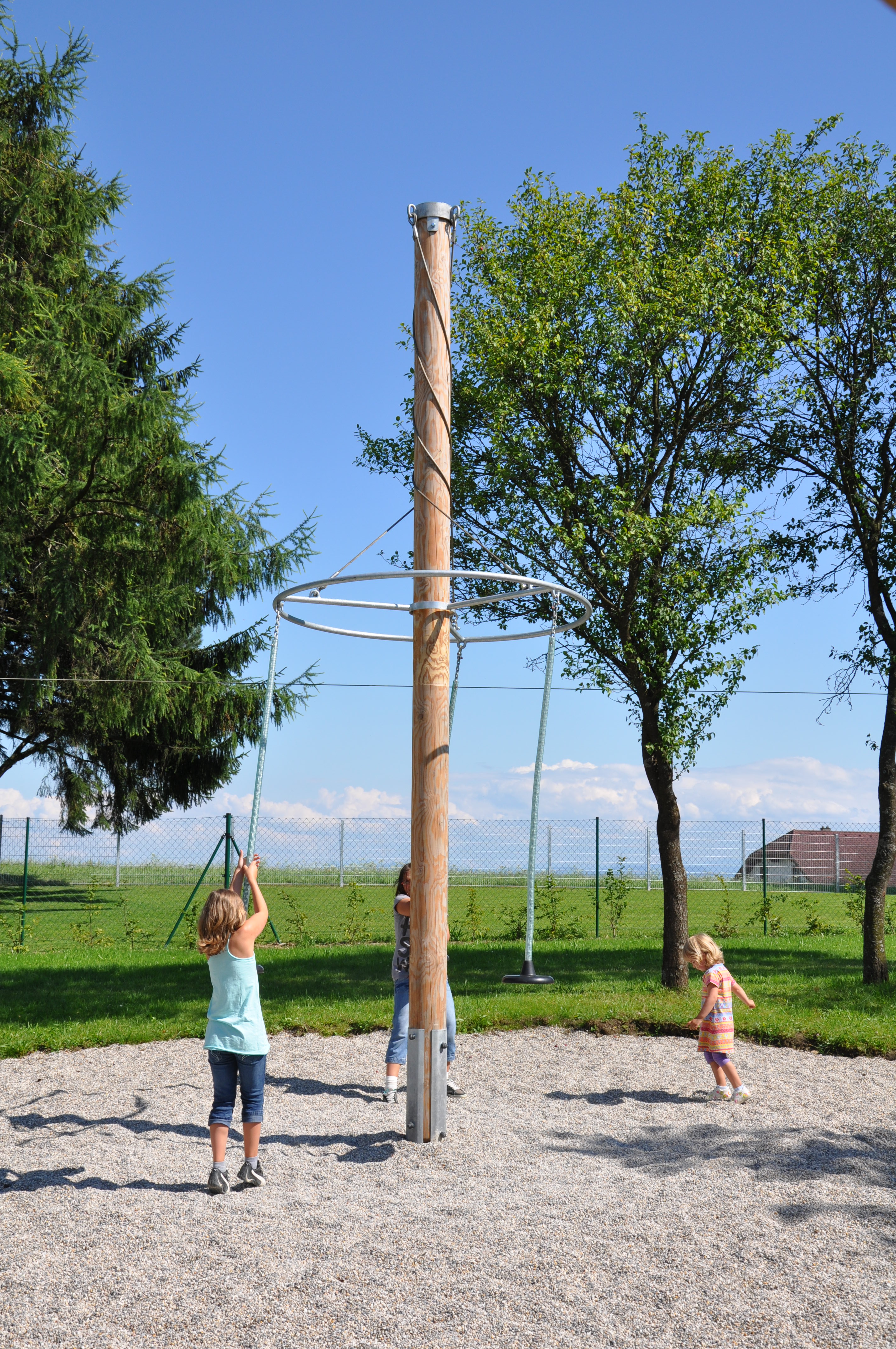 Das Spielgerät Hängekarussellist geeignet für Kinder ab 5 Jahre.