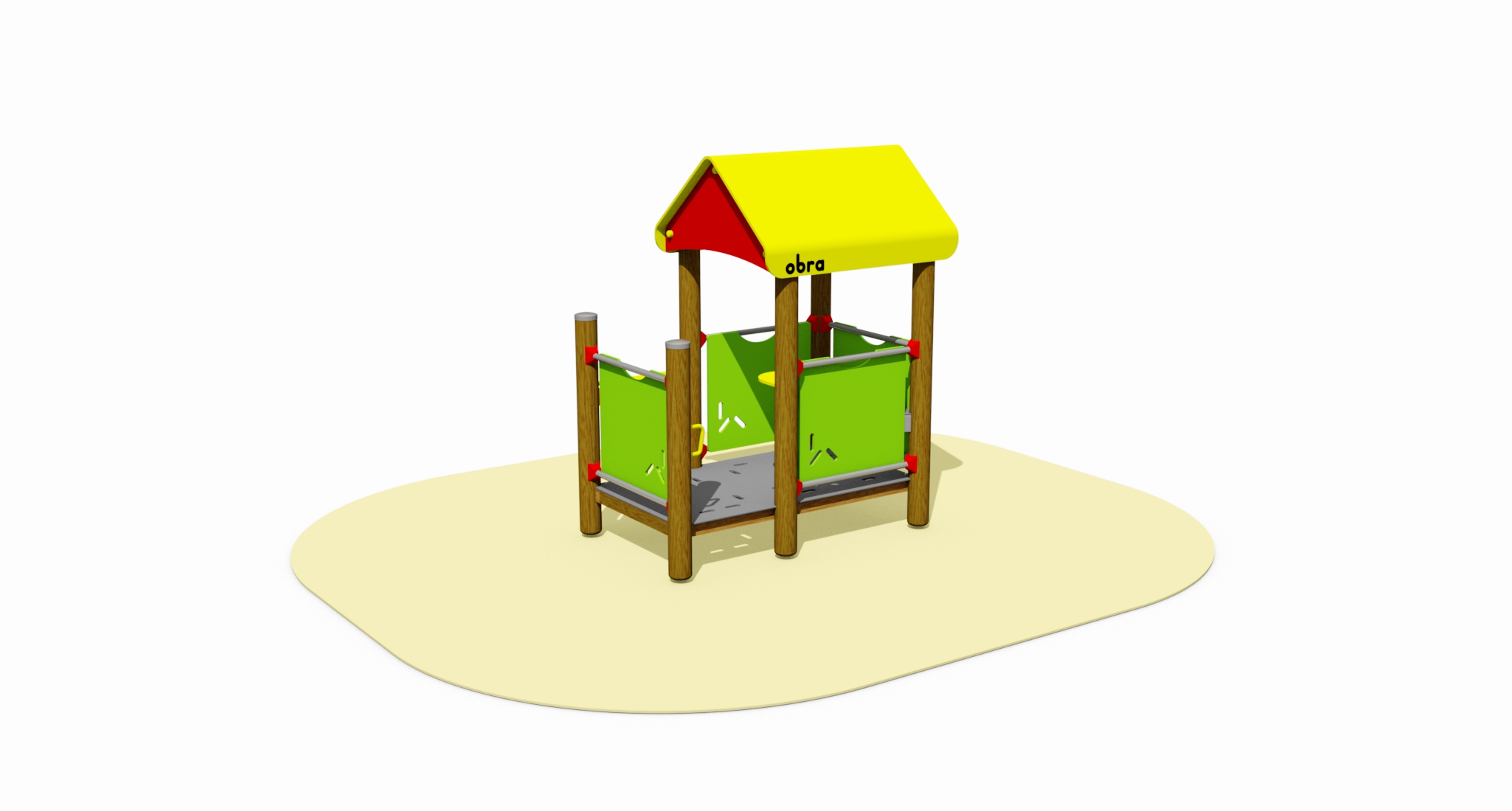 Das Spielgerät OBRA DURAMO Hut besticht durch seine kleine und kompakte Form. Das Spielhaus beinhaltet neben einem Spieltisch auch einen Verkaufspult und ist daher ideal für Rollenspiele geeignet.