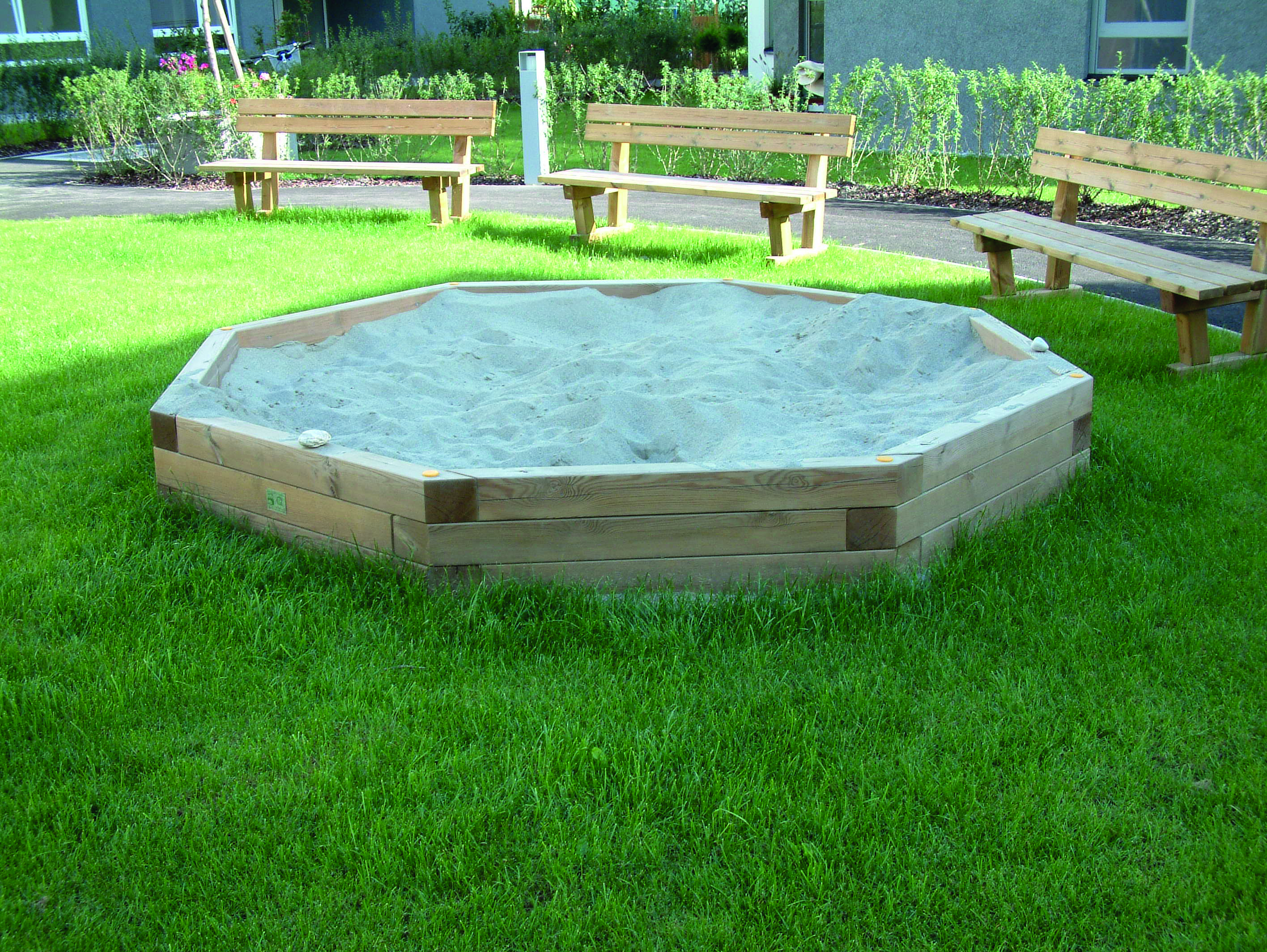 • Das Spielgerät Kantholz-Sandkasten 8eckig