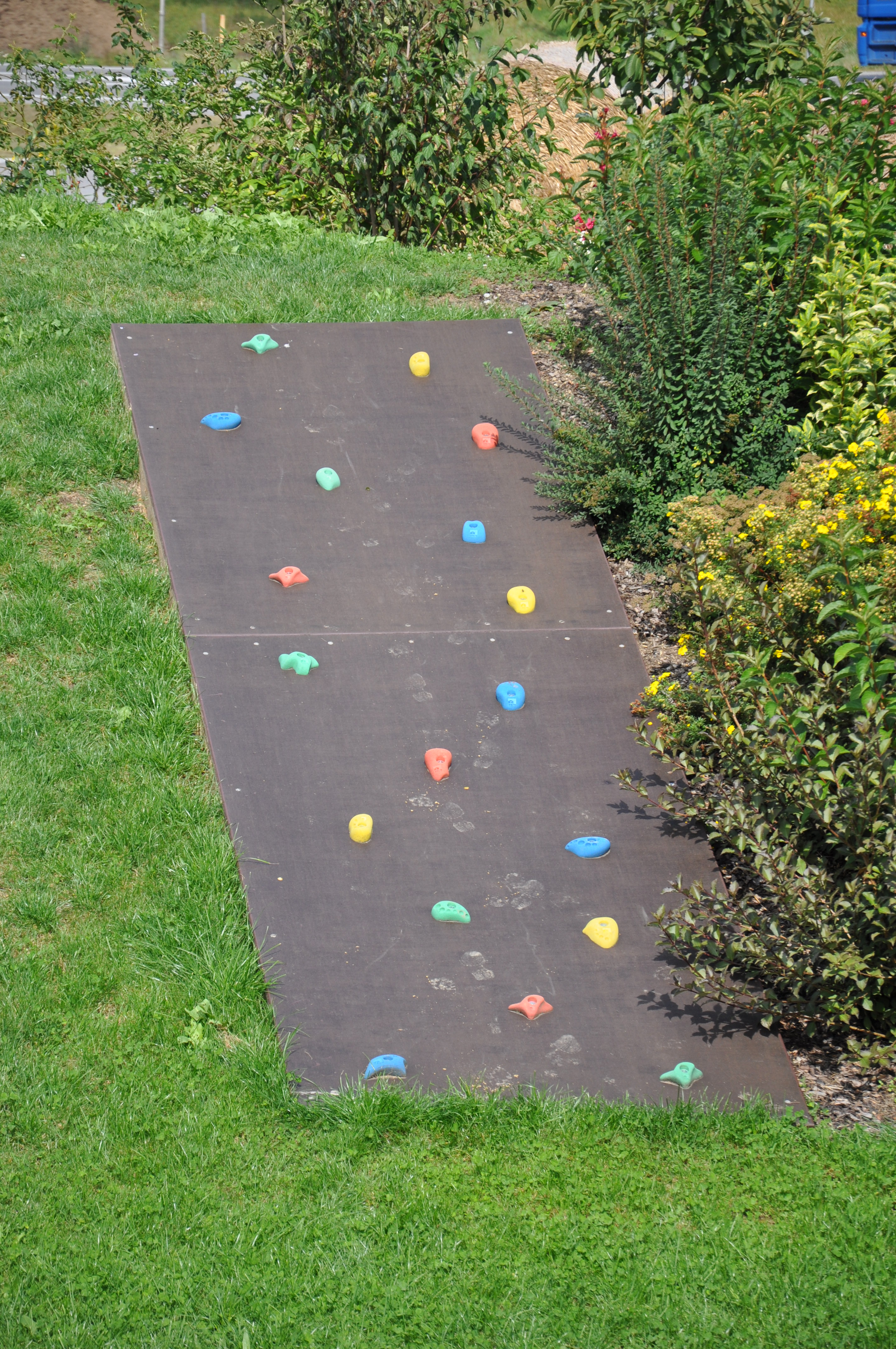 • Das Spielgerät Bergsteiger-Aufstieg mit Klettergriffen, per m²