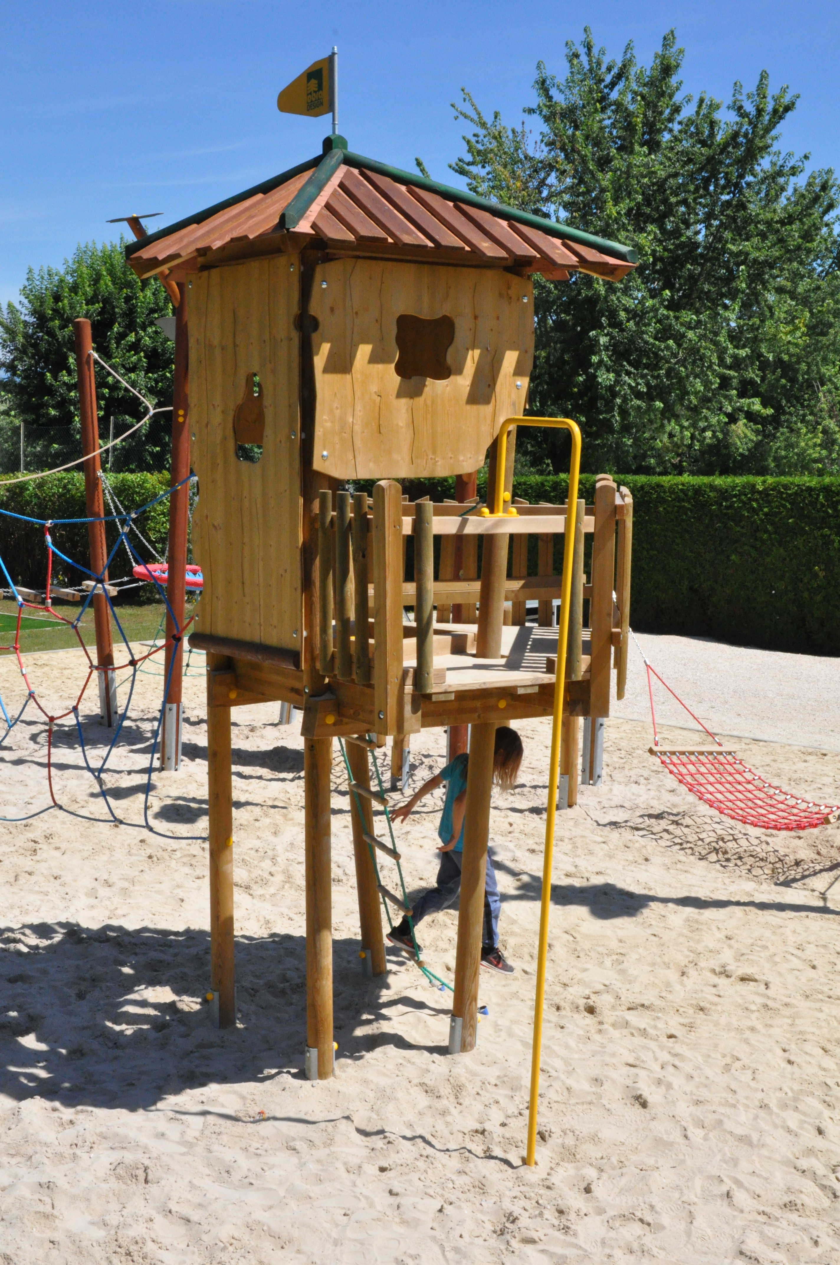 Das Spielgerät Baumhaus Robinsonist geeignet für Kinder ab 3 Jahre.