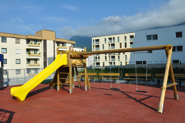 Das Spielgerät Kleiner Rutschenturm, mit Anbauschaukel zweifachist geeignet für Kinder ab 3 Jahre.