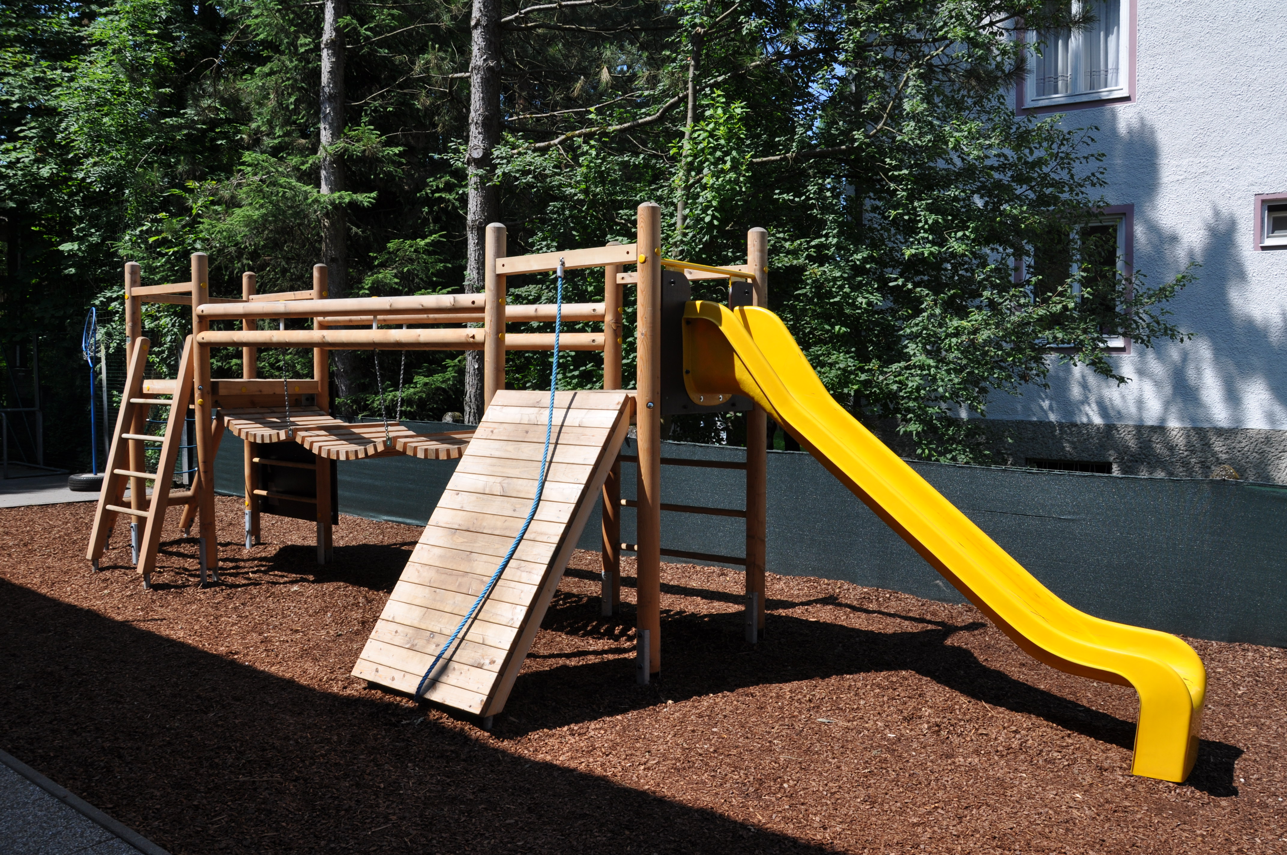 • Das Spielgerät Klettertürme mit Wackelbrücke