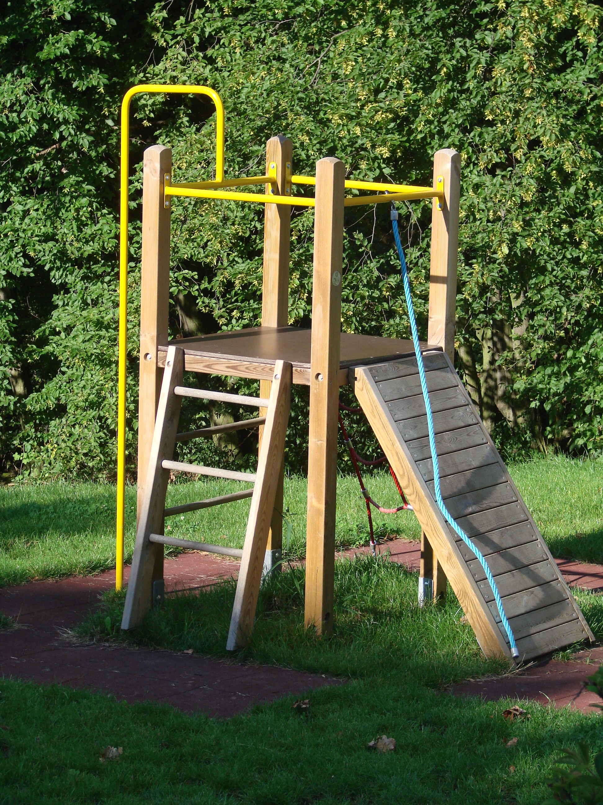 Der obra eco Universal Kletterturm besticht durch seinen hohen Spielwert. Auf kleiner Fläche bietet der Kletterturm fünf verschiedene Aufstiegsmöglichkeiten. Die Plattform kann entweder durch eine Feuerwehr-Kletterstange, einer Aufstiegsleiter, einem Netzeinstieg, einer schiefen Kletterebene mit Anhalteseil oder mit Hilfe des Sprossenaufstieges erreicht werden.