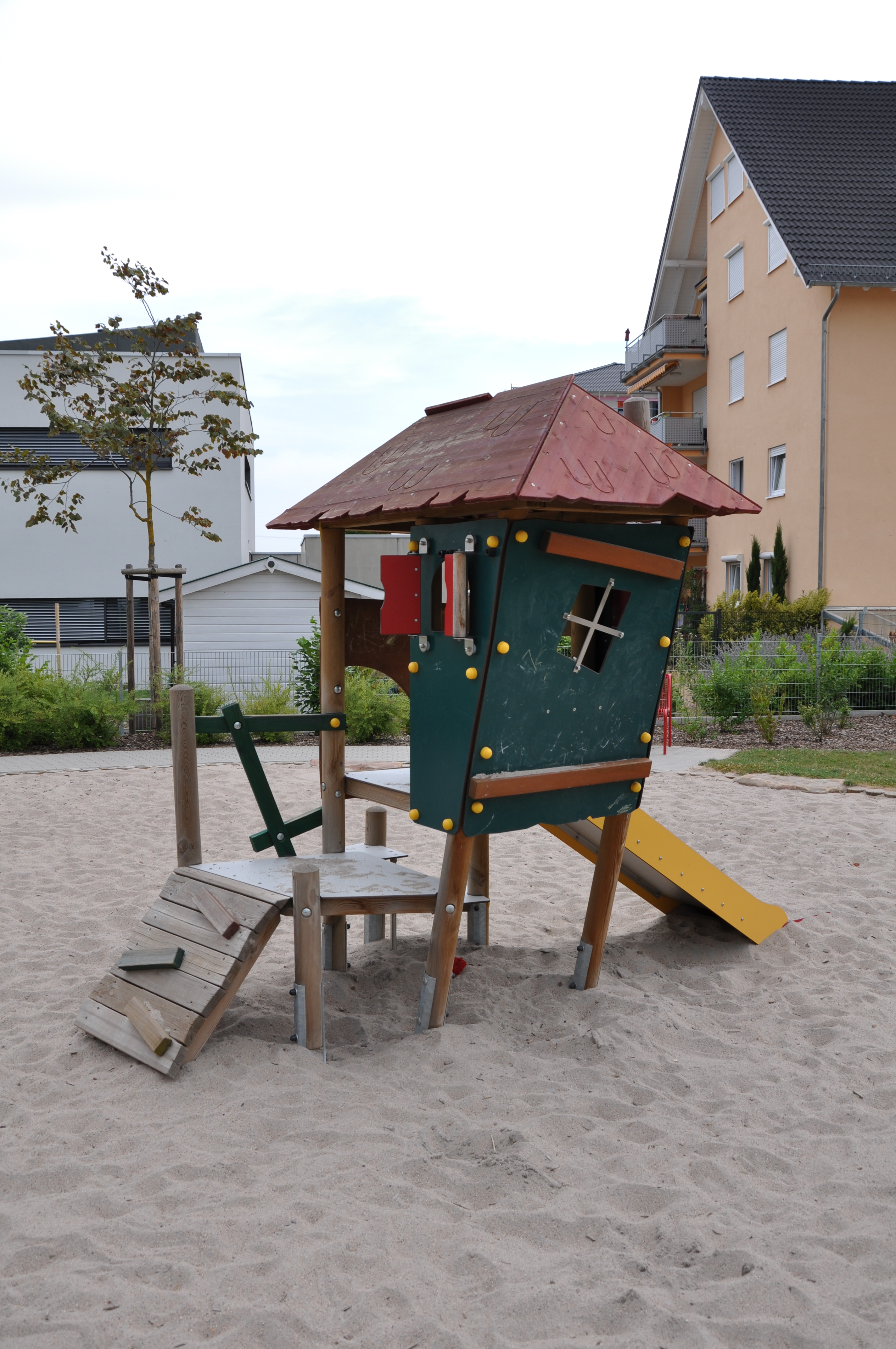 Das Hexenhäuschen aus der Serie Zauberwald besteht aus zwei Podesten, wobei eines an vier Seiten verkleidet ist und ein Dach besitzt. Das Innere des Häuschens, indem sich ein Tischchen und ein Bänkchen befinden, kann über zwei Aufstiege erreicht werden. Zwei Fenster sind mit Fensterläden ausgestattet, die geöffnet und verschlossen werden können. Aus dem Häuschen führt eine Edelstahlrutsche mit Kunststoff-Seitenwangen herunter. Durch die krumm gestalteten Beplankungen und Verkleidungen des Häuschens entsteht die spezielle, abenteuerliche Optik.