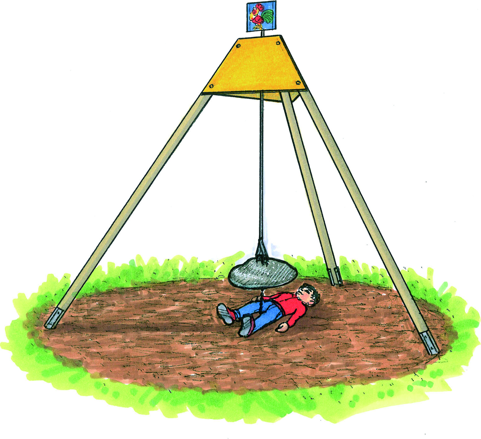 Der Steinblock ist schwingend aufgehängt. Die Vorstellung er könnte fallen, nötigt uns Respekt ab. Der schwingende Stein wirkt nicht nur im Beobachten des Schwingens. Versucht man den Stein in Schwingung zu versetzen wird spürbar, dass heftiger und großer Kraftaufwand nichts gegen die träge Masse ausrichten kann. Kleine Stöße jedoch, im Rhythmus des ganz langsam sich in Bewegung setzenden Steines, verstärkend ausgeführt, steigern das Schwingen zur machtvollen Bewegung. Ähnlich wie auf der großen Balancierscheibe kann hier das rhythmische Zusammenwirken mehrerer Personen geübt und erfahren werden.