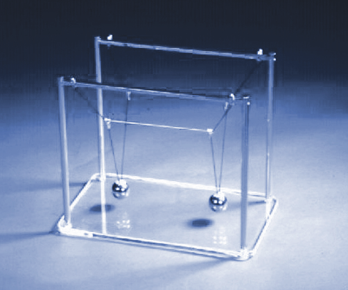 Zwei Kugelgewichte, die an gleichlangen Pendelarmen in der selben Ebene schwingen, sind durch ein elastisches Band miteinander verbunden. Das physikalische Prinzip ist das Wechseln der Energiezustände von potentieller in kinetische Energie und umgekehrt. Das Prinzip ist auch bei der Impulsschaukel angewandt.
