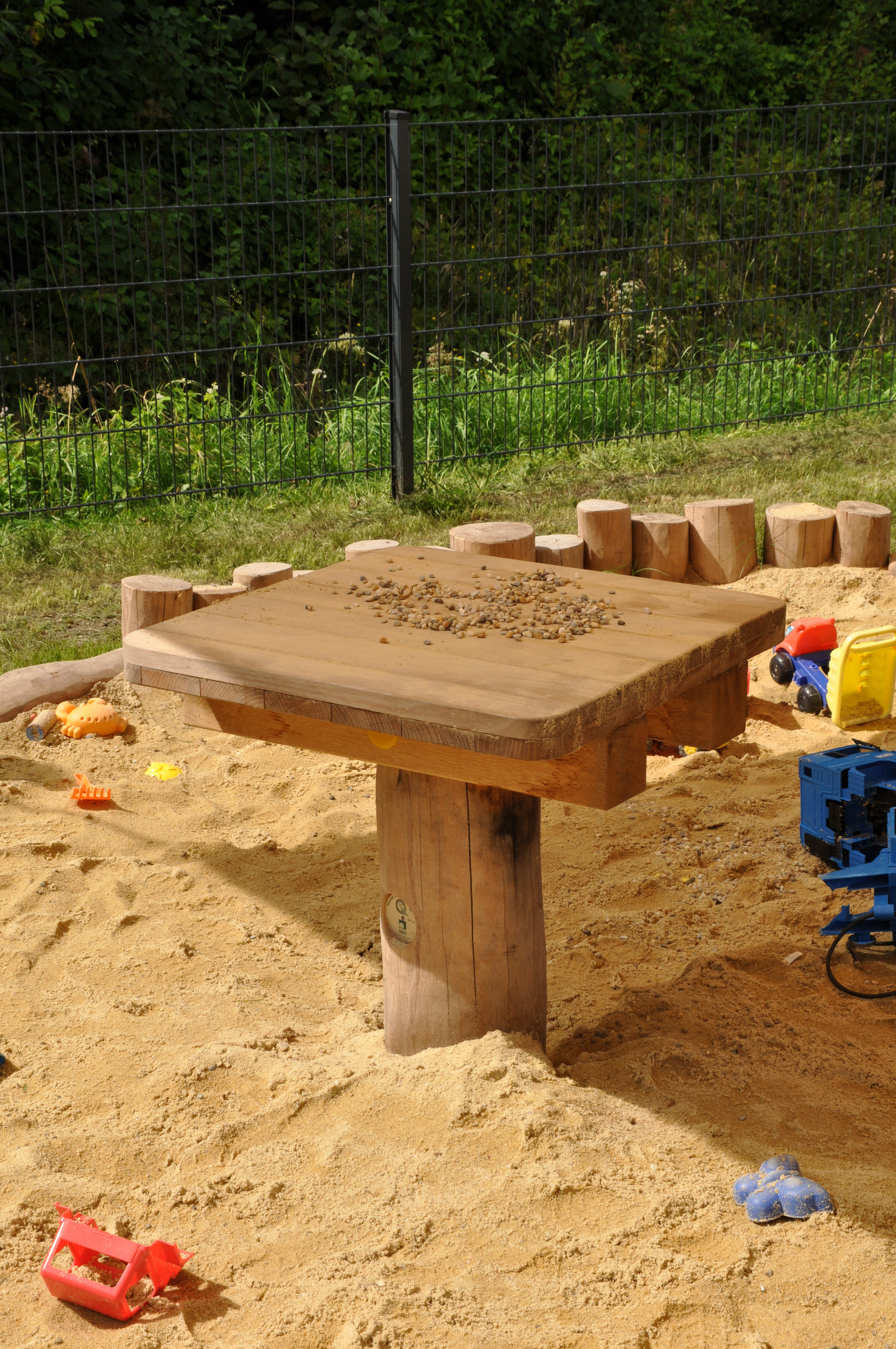 Der Sandspieltisch ist ergänzendes Element in Sandspielbereichen welches zum kreativ werden animiert. Darüber hinaus wird auch das Rollenspiel gefördert.