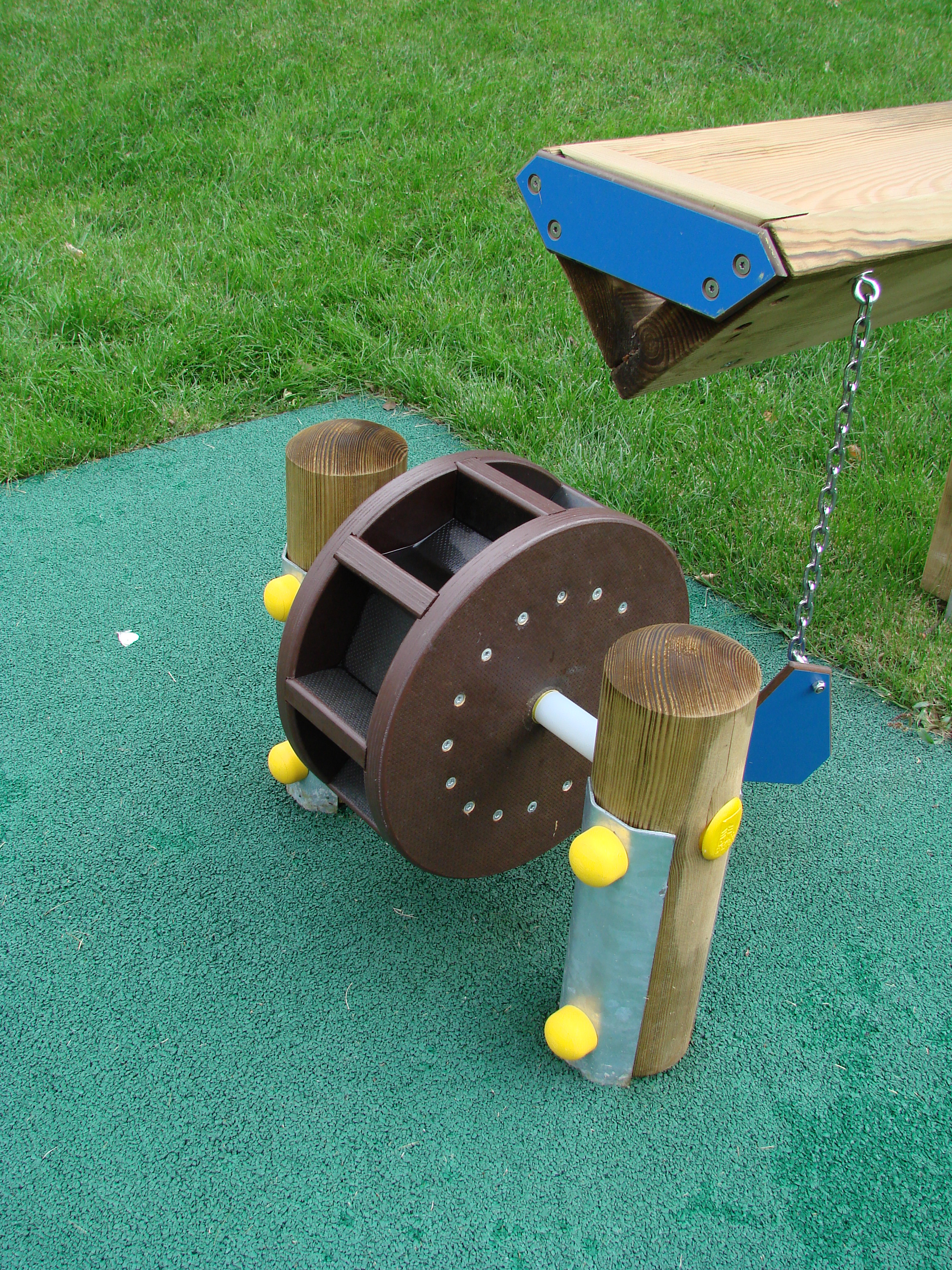 Das Wasserrad kann auch als Sandrad verwendet werden. Das Rad ist durch die Kugellagerung leichtgängig.