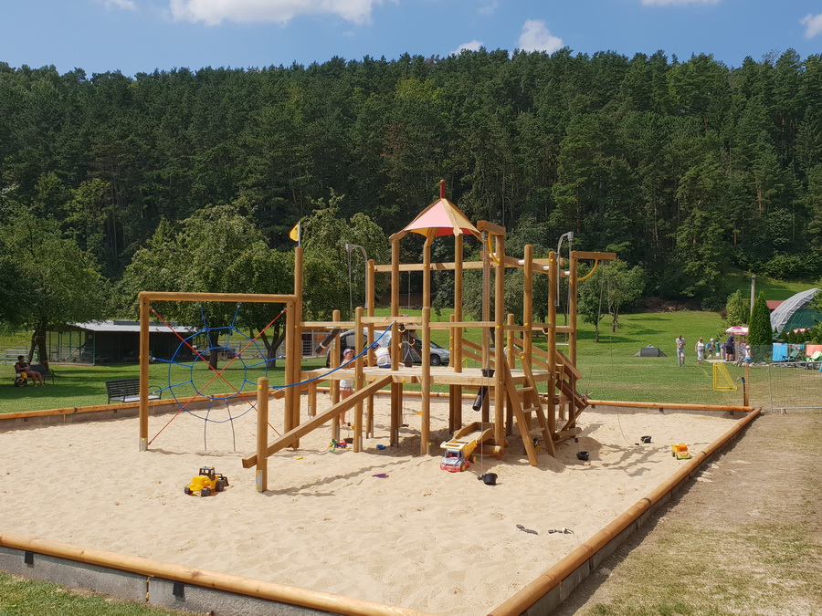 Das Spielgerät Riesen-Sandplattformist geeignet für Kinder ab 3 Jahre.