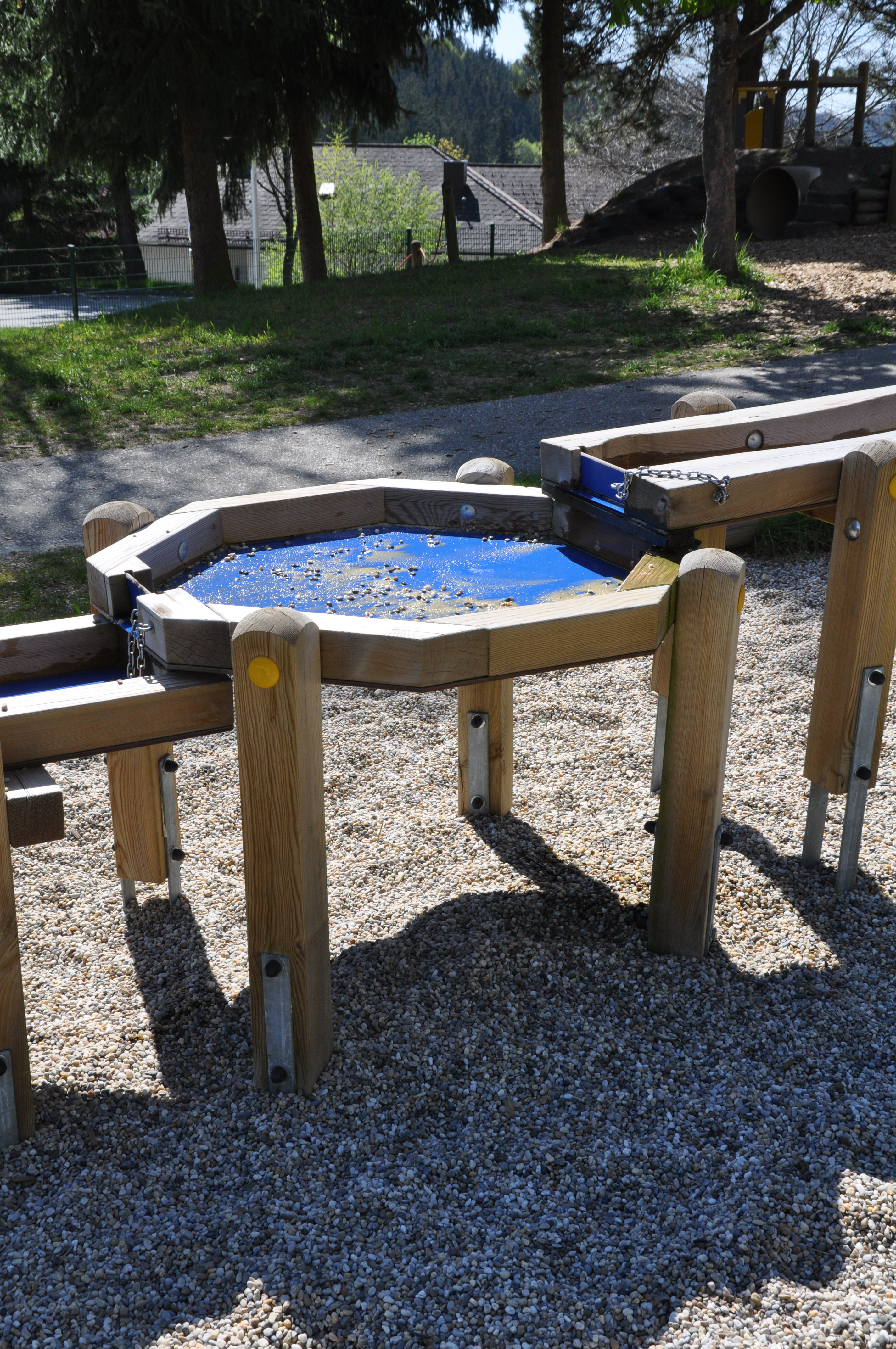 Wasser fühlen und beobachten sind die primären Erfahrungen. Darüber hinaus ist der Wassertisch ideal für Kinder zum Aufstauen, Plantschen und, in Verbindung mit Sand, zum Matschen geeignet. Die Sinne werden beim Spielen mit Wasser geweckt.