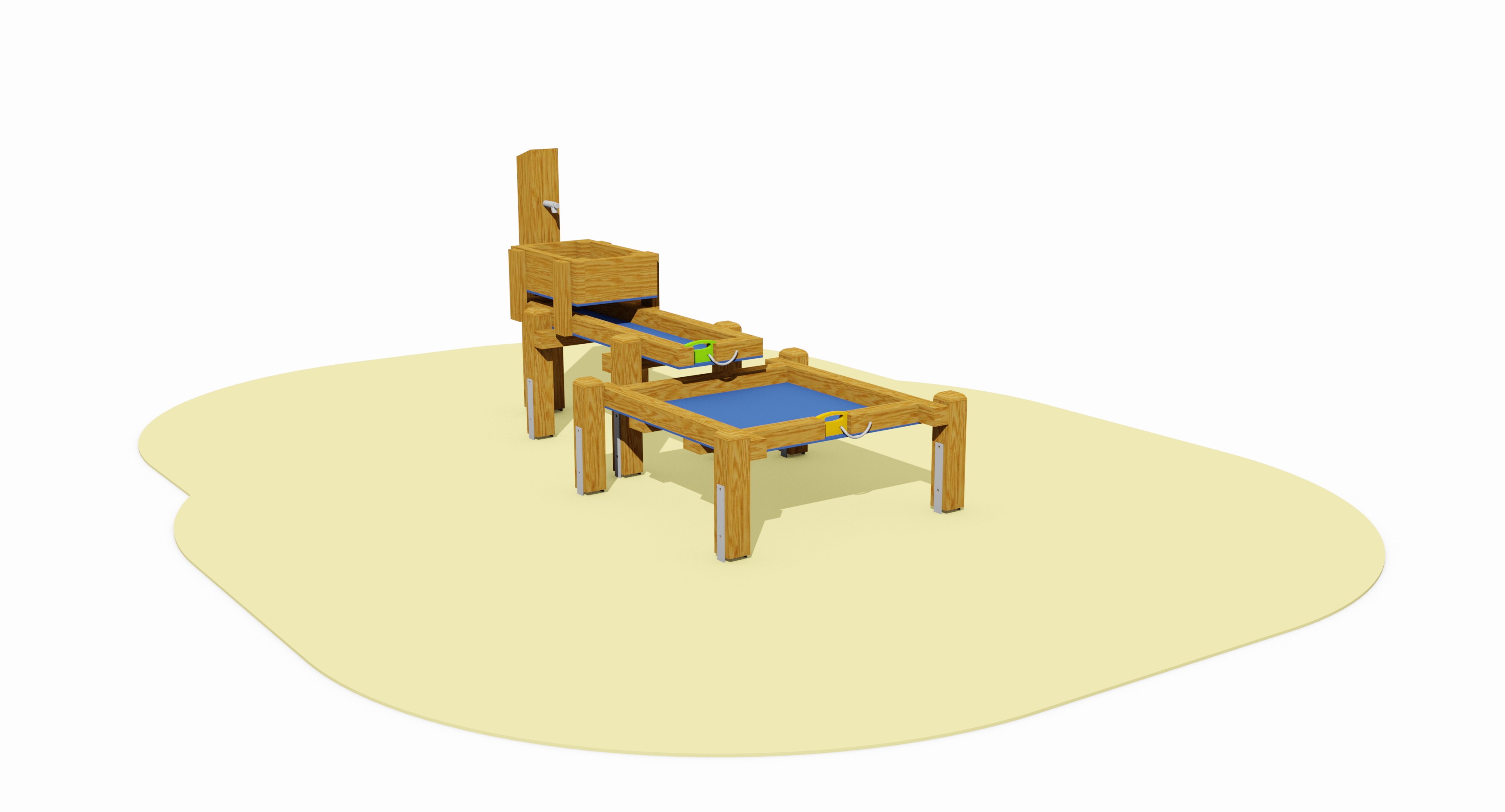 Zusätzliche Wasserspiel-Elemente wie Wassertische oder ein Wasserrad sind kombinierbar.