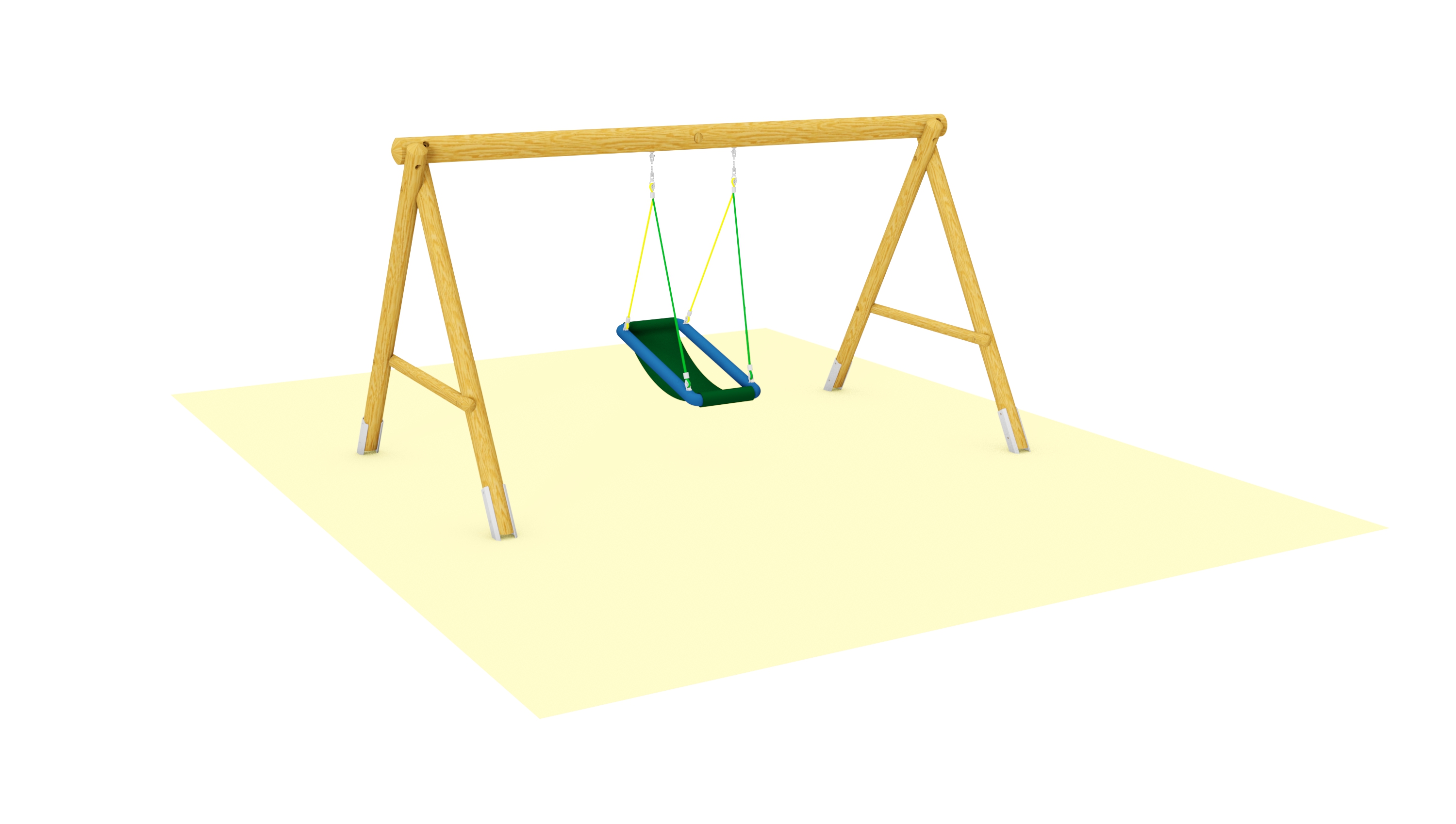 Die Swing4all Mini-Schaukel besteht aus zwei massiven A-Stützen und einem 4,0 m langen Schaukelbalken aus Brettschichtholz. Der Schaukelbereich ist seitlich durch Durchlaufsicherungen zwischen den A-Stützen abgeschirmt.