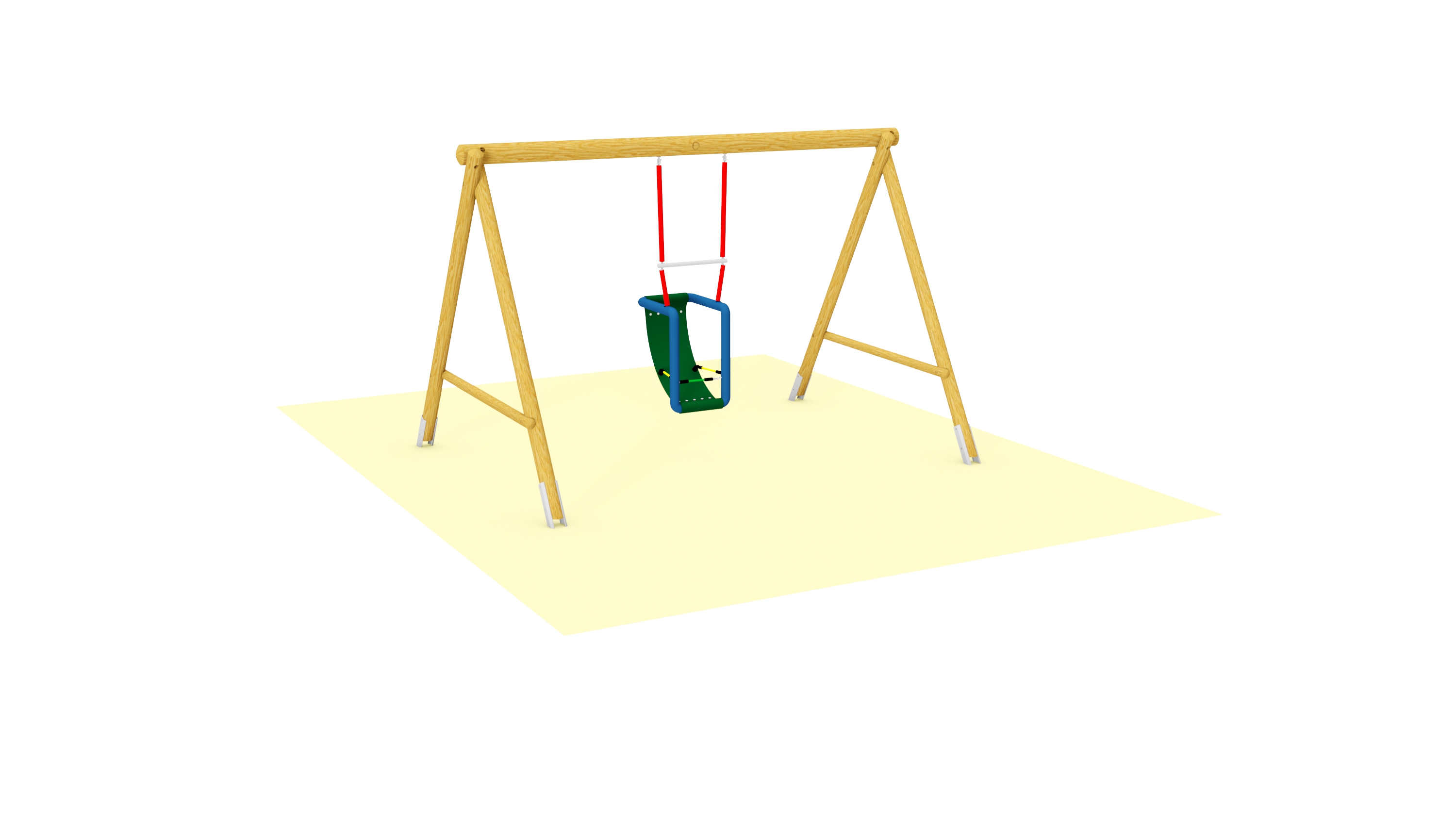 Die Swing4all Midi-Schaukel besteht aus zwei massiven A-Stützen und einem 4,0 m langen Schaukelbalken aus Brettschichtholz. Der Schaukelbereich ist seitlich durch Durchlaufsicherungen zwischen den A-Stützen abgeschirmt.