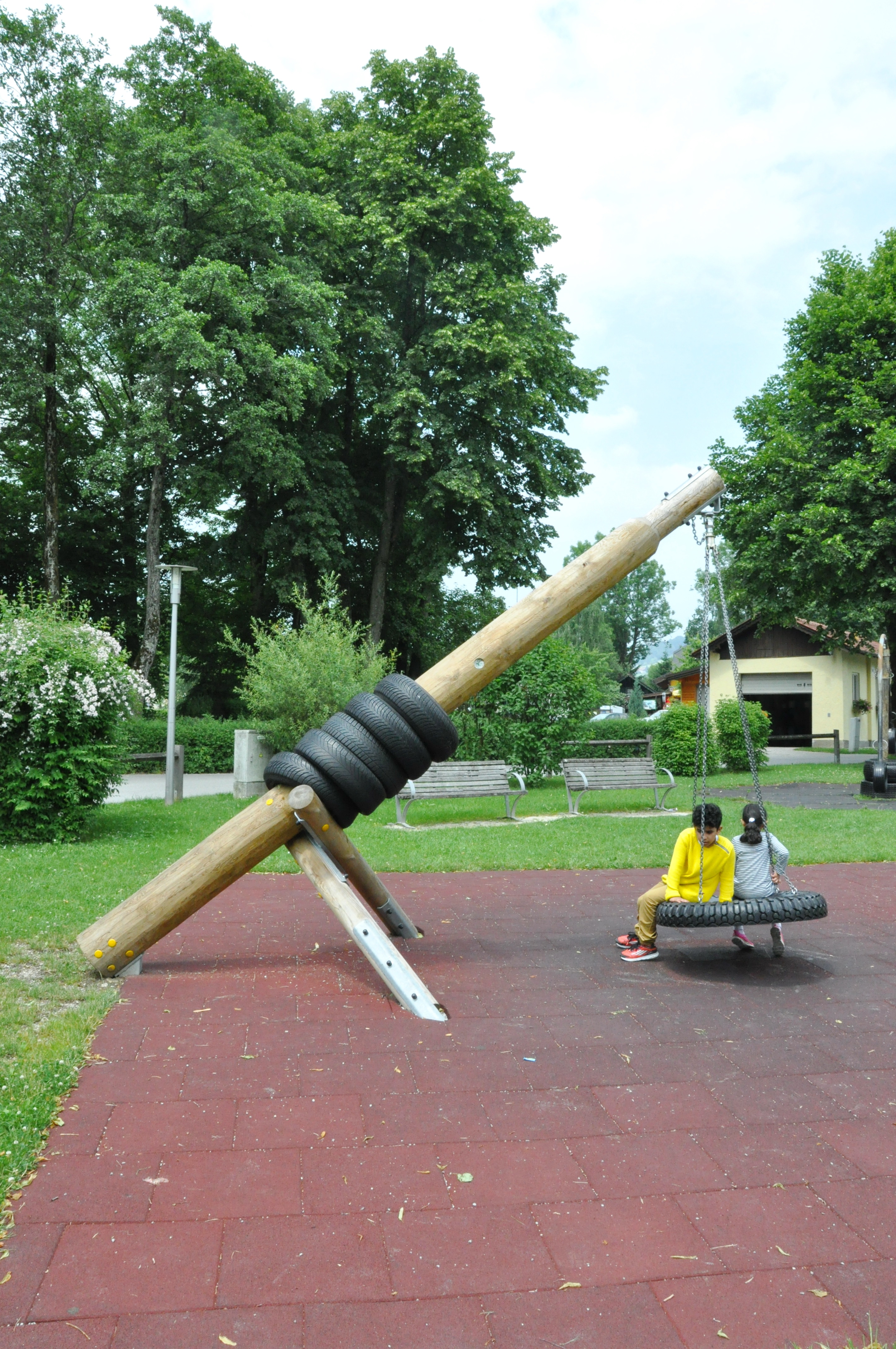 Die Pendelschaukel besteht aus einem massiven Schaukelmast, welcher schräg in den Boden verankert wird. Der Mast wird mittels zwei schrägen Stützen abgestrebt. Am höchsten Punkt der Auskragung ist ein Reifenpendel angebracht, welches sich in alle Richtungen schaukeln lässt.