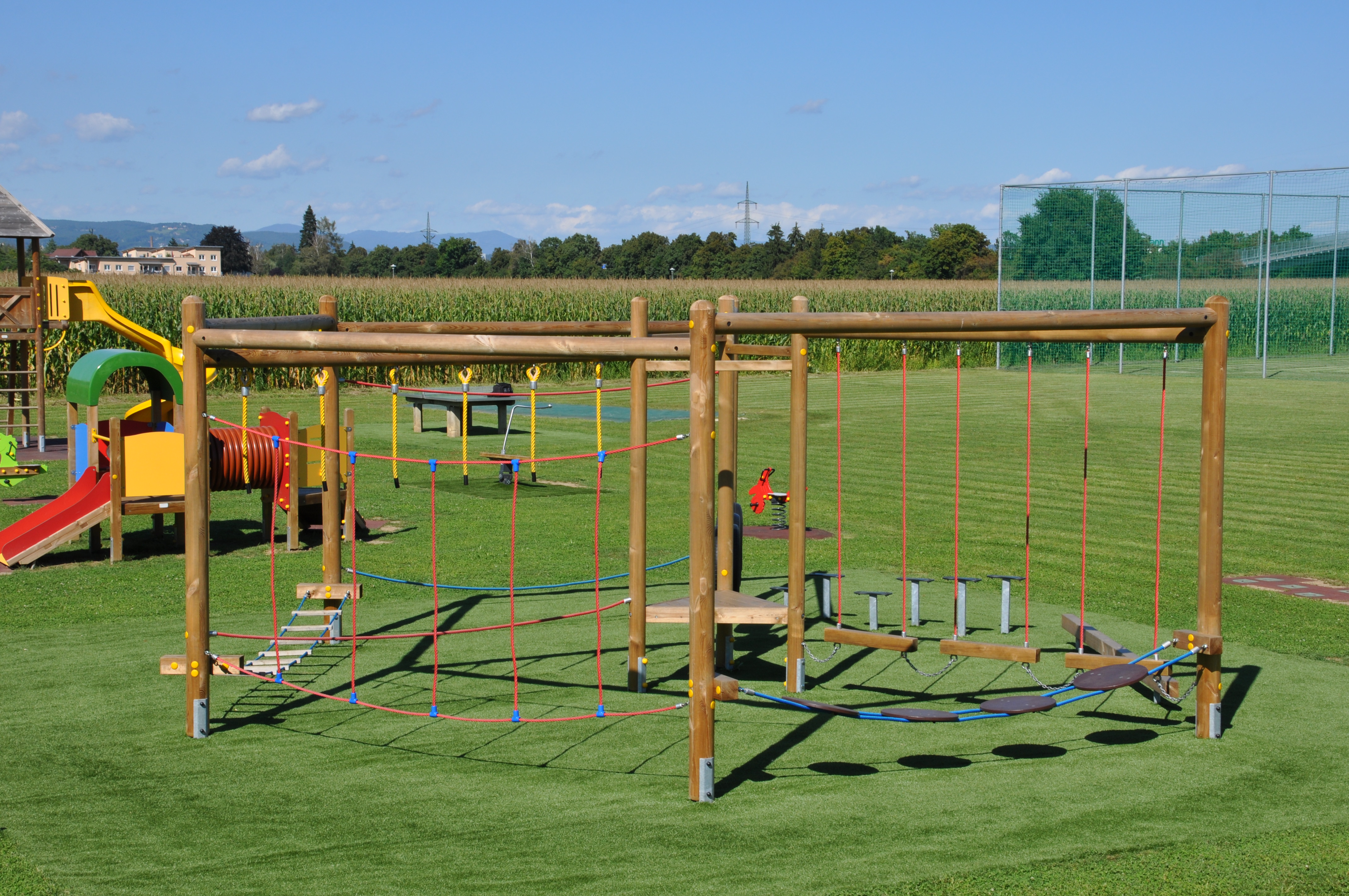 Nicht nur in großer Höhe zu Balancieren macht Spaß! Für Spielplätze sind nach dem Vorbild von Hochseilgärten auch bodennahe Kombinationen unterschiedlicher Balancier- und Hangel-Elemente herausfordernd und interessant. Daher tägt dieses Spielgerät auch den Namen "Niedrigseilgarten". Schon ab dem Vorschulalter können Teile dieser Anlage genützt werden und die ganze Anlage ist für Kinder im Grundschulalter perfekt geeignet.