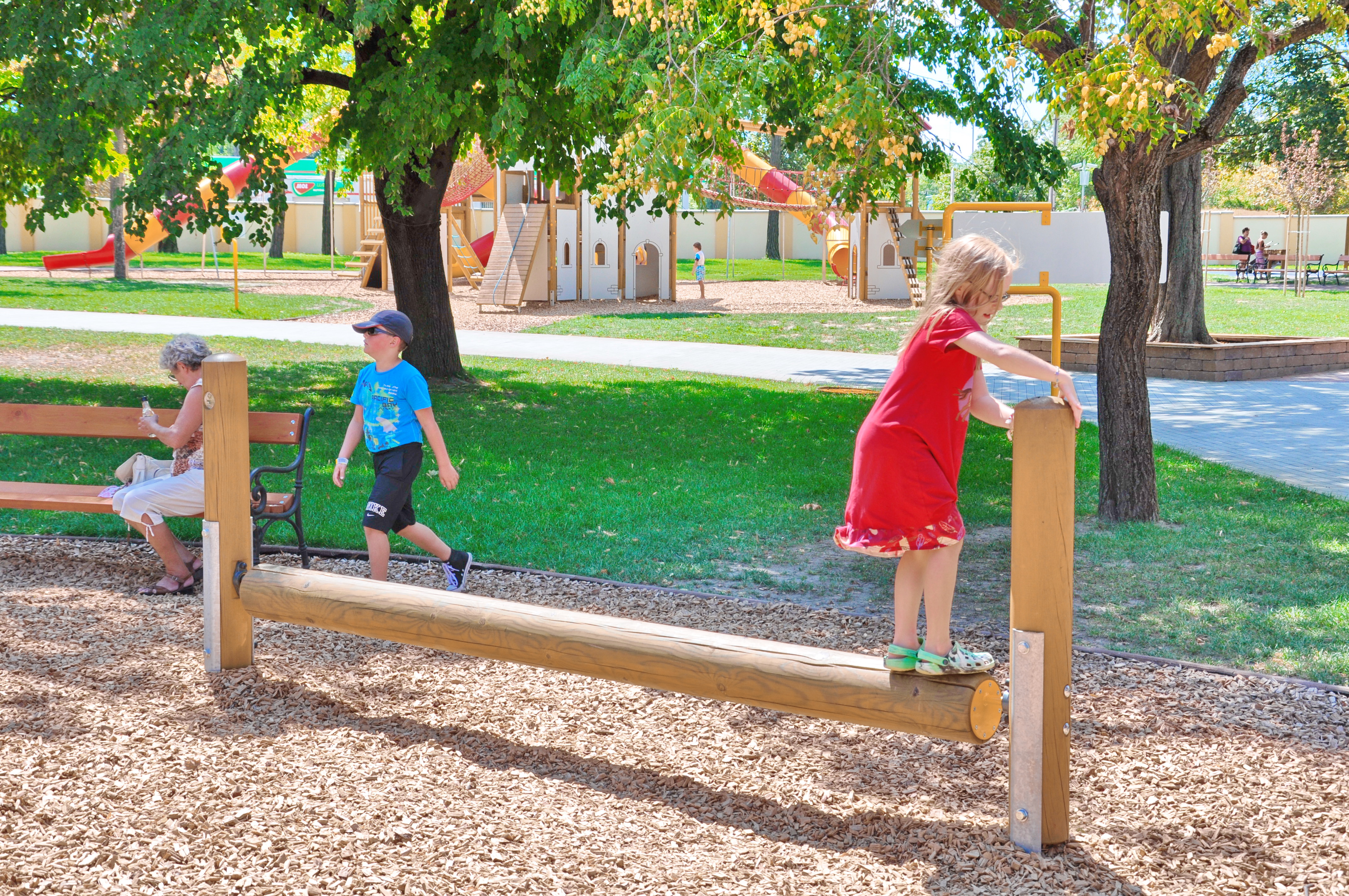 Das Spielgerät Balancierrolleist geeignet für Kinder ab 7 Jahre.