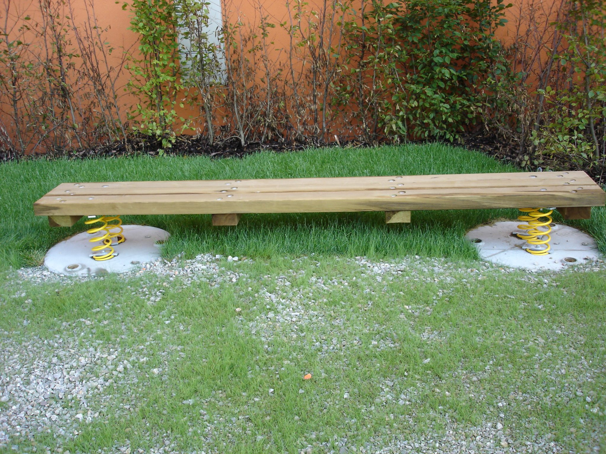 Die Plattform, welche aus verschraubten Kanthölzern besteht, ist auf vier Federn gelagert und kann durch Belastung zum Wackeln gebracht werden. Das Wackelbrett kann von mehreren Kindern gleichzeitig bespielt werden.