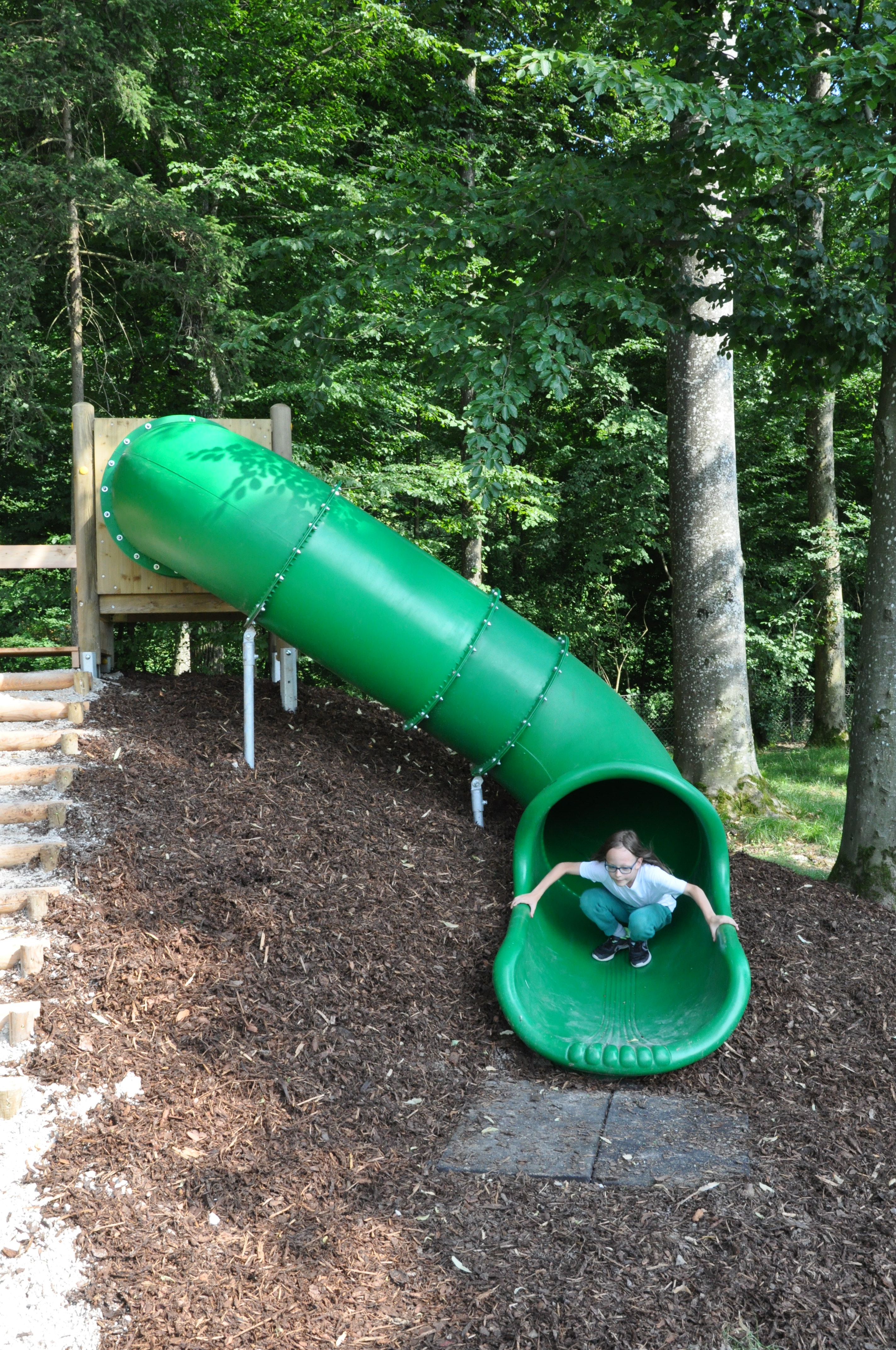 Beschreibung: Kunststoff-Röhrenrutsche aus schlagfesten, formstabilen Polyethylen-Spritzgu teilen. Die Rutschenteile werden an den Stößen verschraubt.