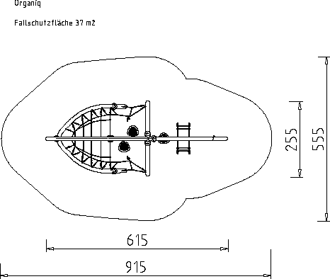Konstruktion aus abgewinkelten bzw. gebogenen Stahlrohren mit einem Durchmesser von 133 mm und einzigartigem Rohrverbindungssystem, strapazierfähige Netze aus Polypropylenseil mit Stahlkern, 1 beweglicher Ring aus LDPE-Material im Rotationsgussverfahren hergestellt, 3 pilzförmige Trittflächen aus LDPE mit antirutsch Beschichtung, 1 Kunststoffscheibe, 11 Haifischzähne aus HDPE, Witterungseinflüssen ausgesetzte Schrauben aus rostfreiem Stahl.