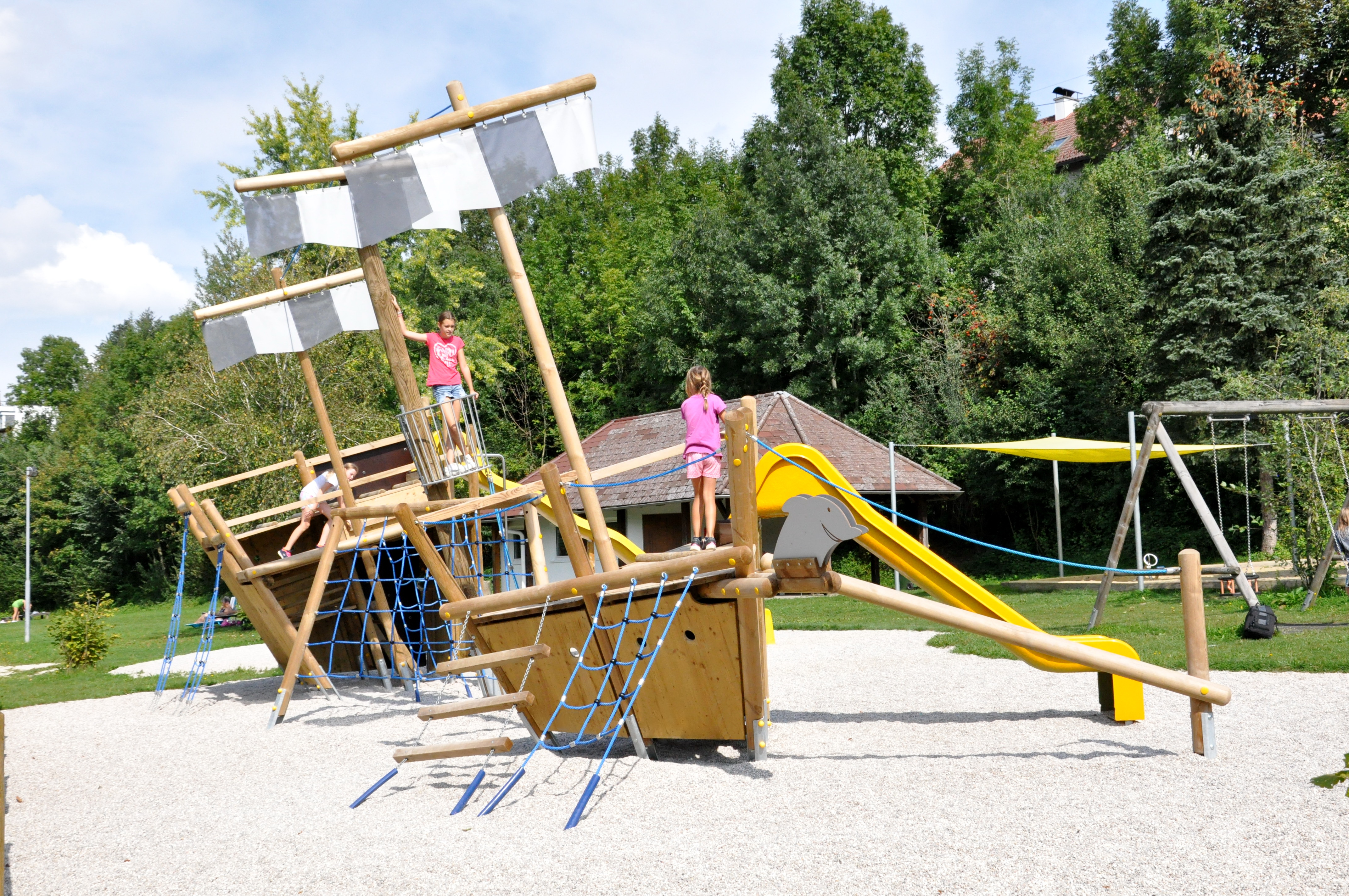 An Bug und Heck besteht die jeweils die Möglichkeit eine Rutsche anzubauen. Die 3 Teile des Spielgerätes (35265 Bug, 35270 Mast, 35275 Heck) können auch einzeln oder in Etappen installiert werden.