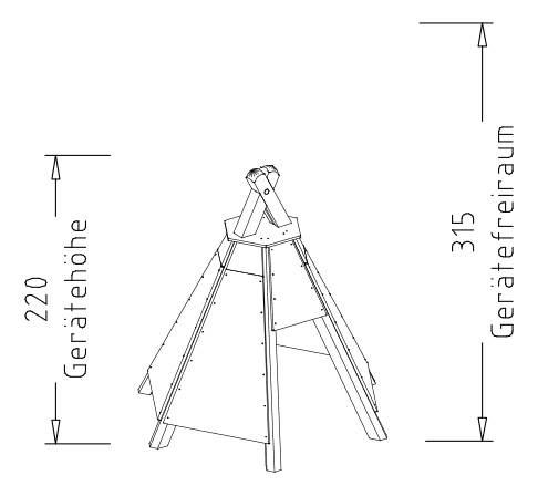 Beschreibung: Konstruktion aus Kiefern-Kanthölzern 11 x 11 cm, Außenplatten aus Dreischichtplatten, wasserfest verleimt, bzw. HPL. Best.Nr. 35322 mit aufkaschierter Folie mit Indianer-Symbolik, durch Flüssiglaminat geschützt; 1 Sitzbank aus Siebdruckplatte.