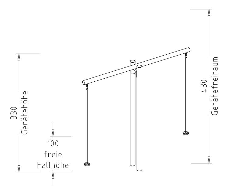 Bei dieser außergewöhnlichen Wippe befindet sich der Wippbalken in gut 3 m Höhe. Die Nutzer wippen sitzend oder stehend an beweglich abgeängten Pendelsitzen. Neben dem herkömmlichen Auf und Ab einer Wippe bewegen sich die Pendel zusätzlich vor und zurück sowie seitlich.