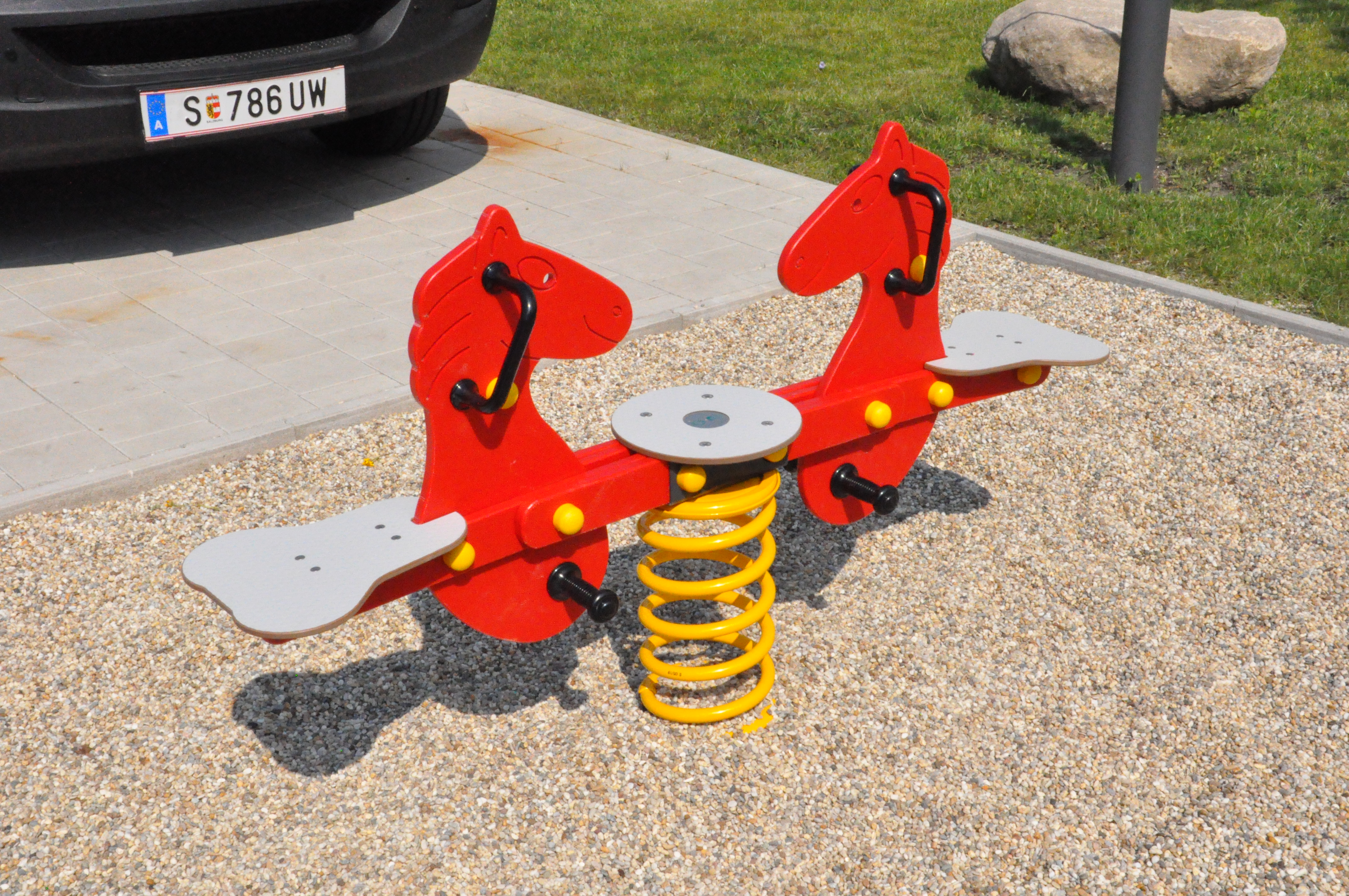 Federwippen gehören zur Standard-Ausstattung eines jeden guten Spielplatzes! Besonders positiv hervor zu streichen ist der geringe Platzbedarf dieser Spielgeräte. Die Federwippe Wildpferde bildet außerdem durch ihre gelungene Form einen markanten Blickfang in der gesamten Anlage. Diese etwas größere Wippe bietet für maximal 3 Kinder gleichzeitig Platz. Somit ist dieses Spielgerät neben der Wippfunktion auch zur Anregung von Rollenspiel geeignet.
