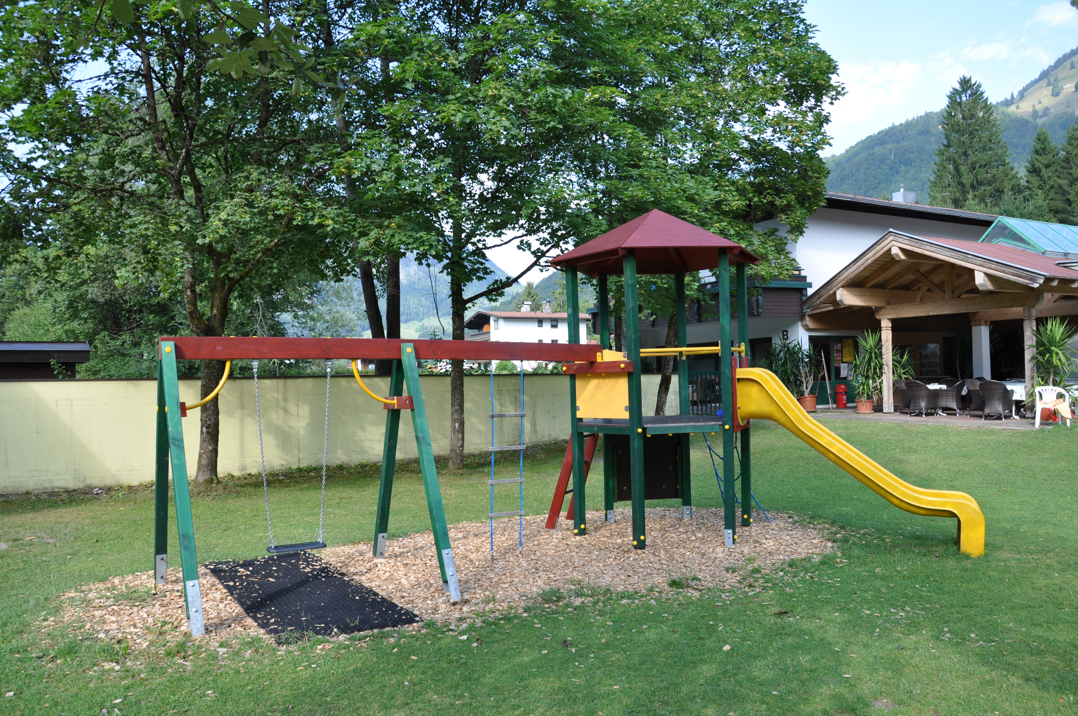 Das Spielgerät obra eco Sechseckturm mit Dach, 1 Schaukel und Strickleiterist geeignet für Kinder ab 3 Jahre.