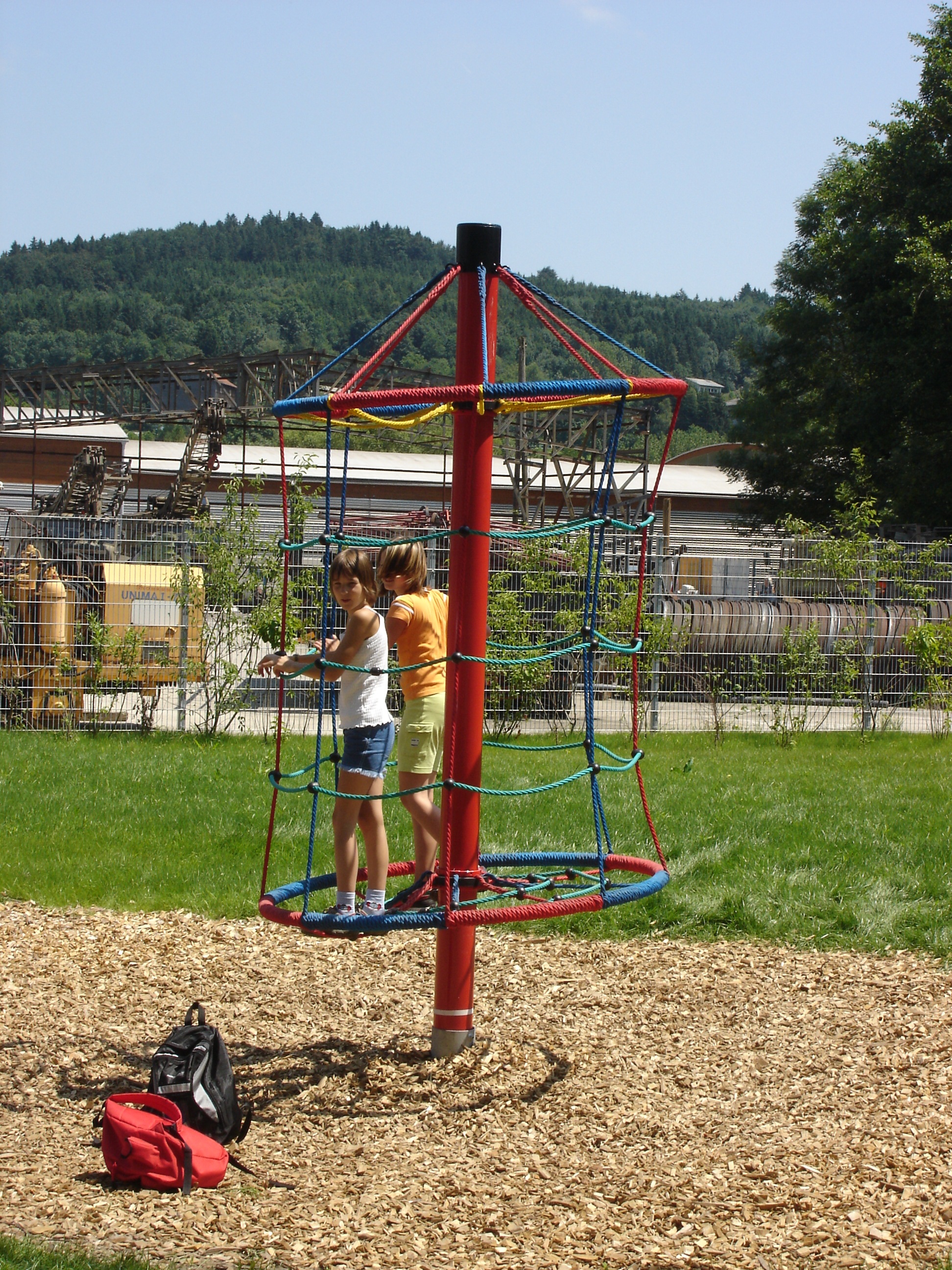 Zwei mit Tau ummantelte Stahlringe, welche mit einem Netz bespannt sind, sind wiederum miteinander durch ein Kletternetz verbunden und an einem Stahlmast abgehängt. Die Ringe samt Netzen sind drehbar an einem Stahlmast gelagert. So entsteht ein interessantes Kletterelement aus Tauwerk welches den Gleichgewichtssinn fordert.