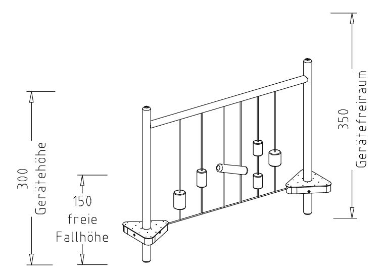 Durch die abgehängten Rundhölzer in unterschiedlichen Durchmessern und Längen fordert der Übergang ein gewisses Geschick ihn zu überqueren bzw. zu überklettern.
